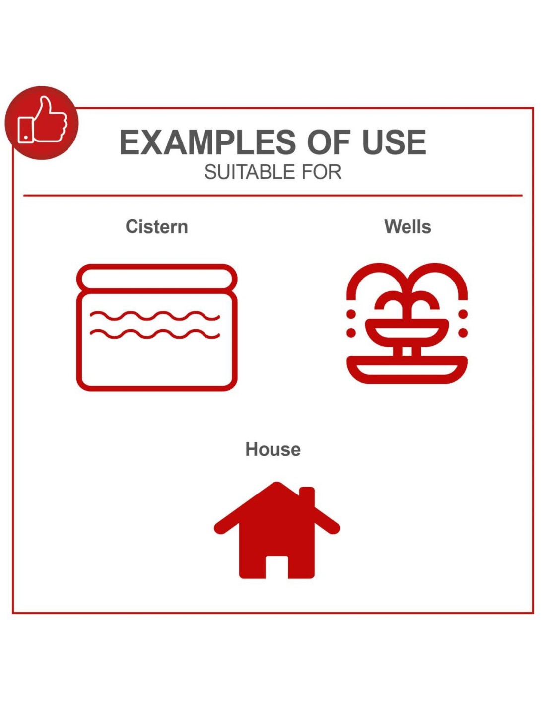 - Acqua di servizio da pozzi, cisterne o serbatoi d'acqua, proteggendo le risorse