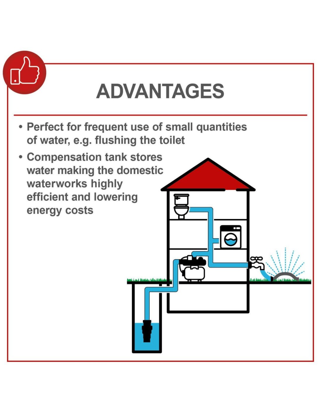 - La vasca di compensazione immagazzina l'acqua rendendo l'acquedotto domestico particolarmente efficiente e diminuendo i costi energetici