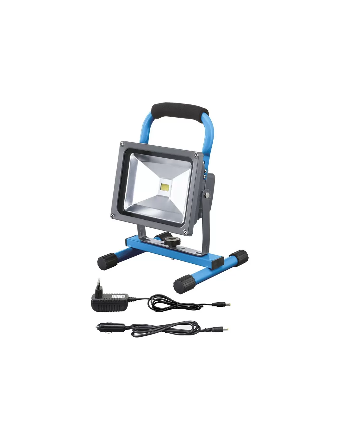 CON INTERRUTTORE PER FUNZIONAMENTO A 600 lm, RICARICA AUTO CON SPINA PER ACCENDISIGARI E ALIMENTATORE 230 V DA CASA, ROBUSTO SUPPORTO ORIENTABILE