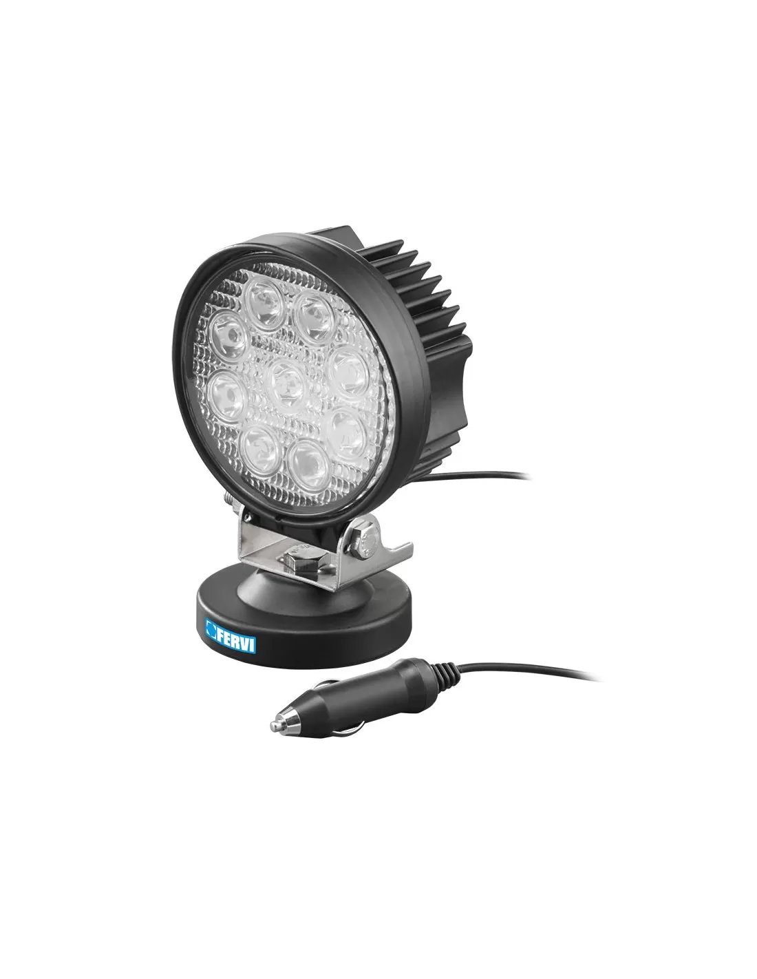 Faro a led tondo 12-24v con base magnetica x auto 9 x 3w Fervi 0713/27