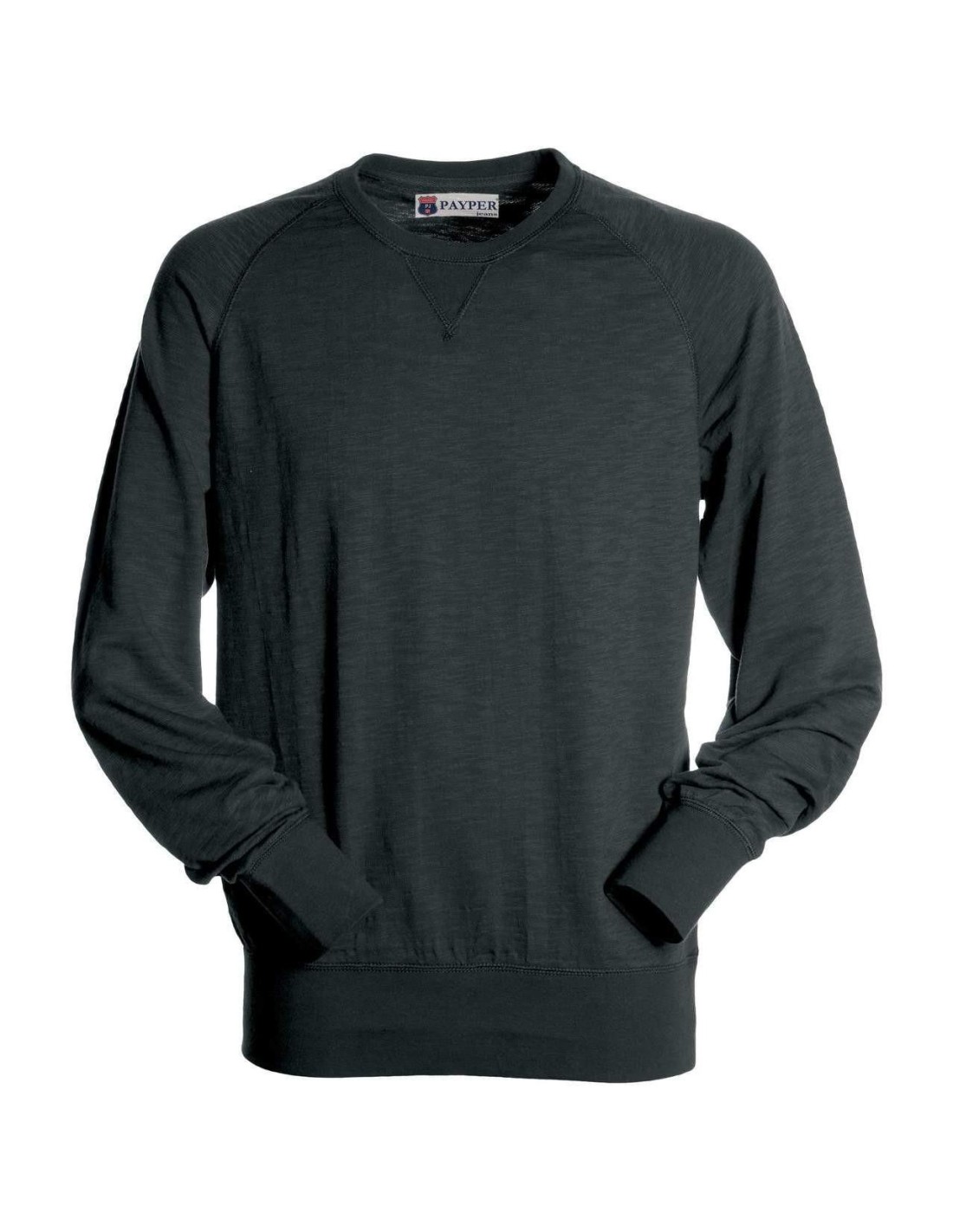 Felpa girocollo con maniche raglan, polsini e vita in rib elasticizzato e cucitura estetica a V al collo.