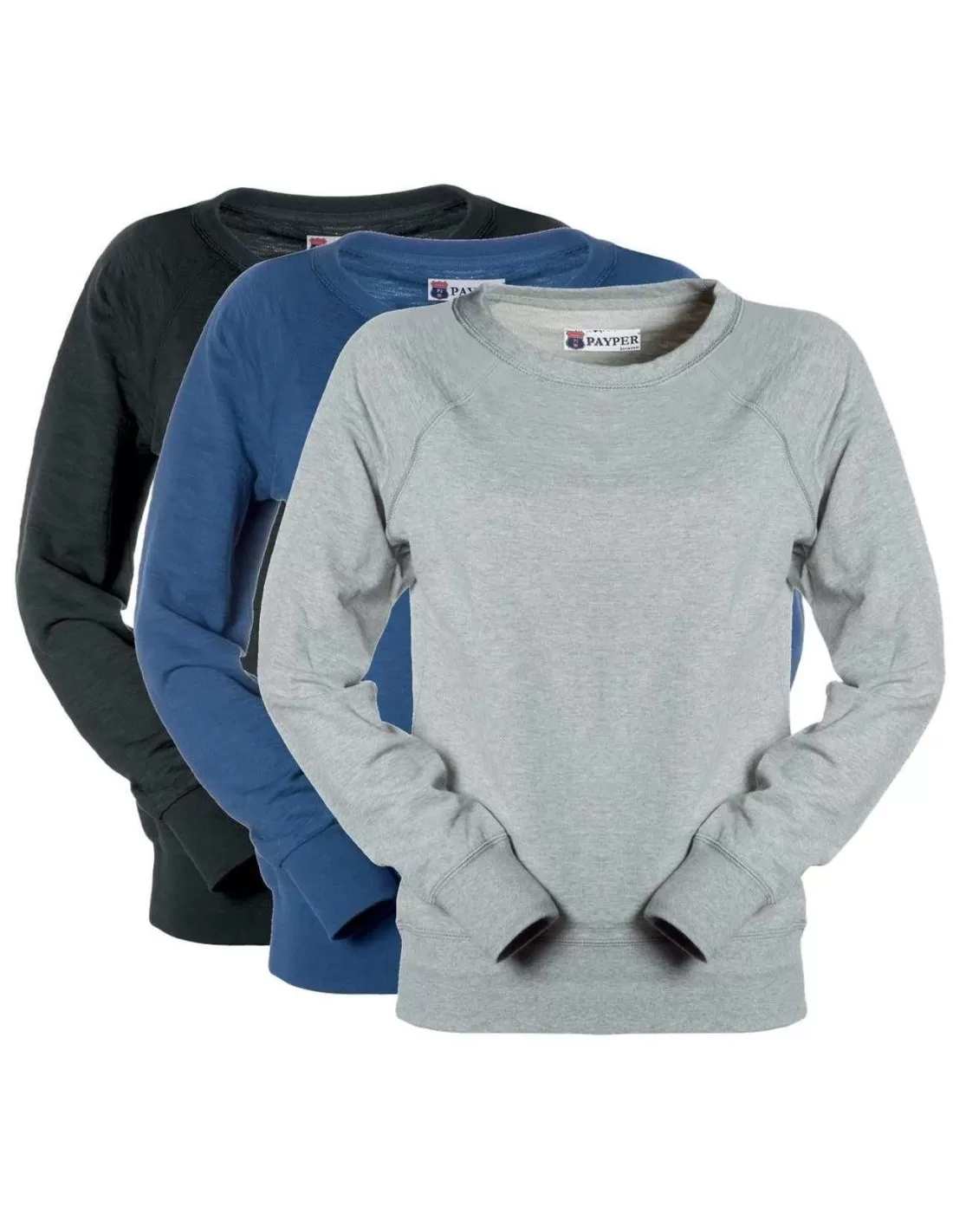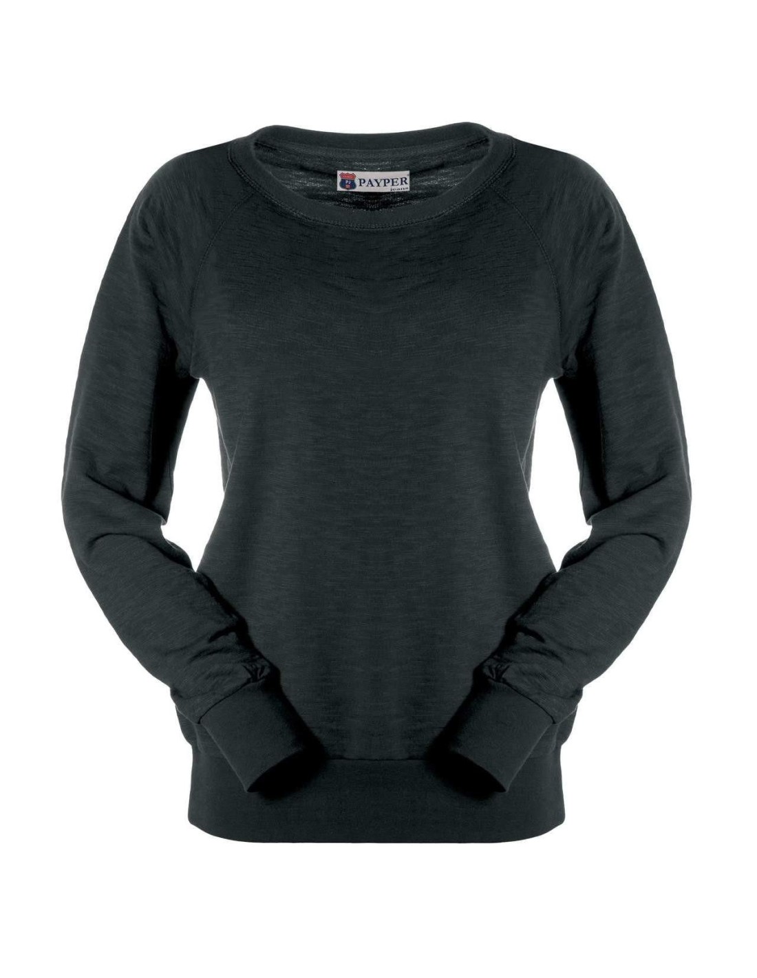 Felpa da donna con maniche raglan, collo ampio con rib elasticizzato, polsini e vita in rib elasticizzato.