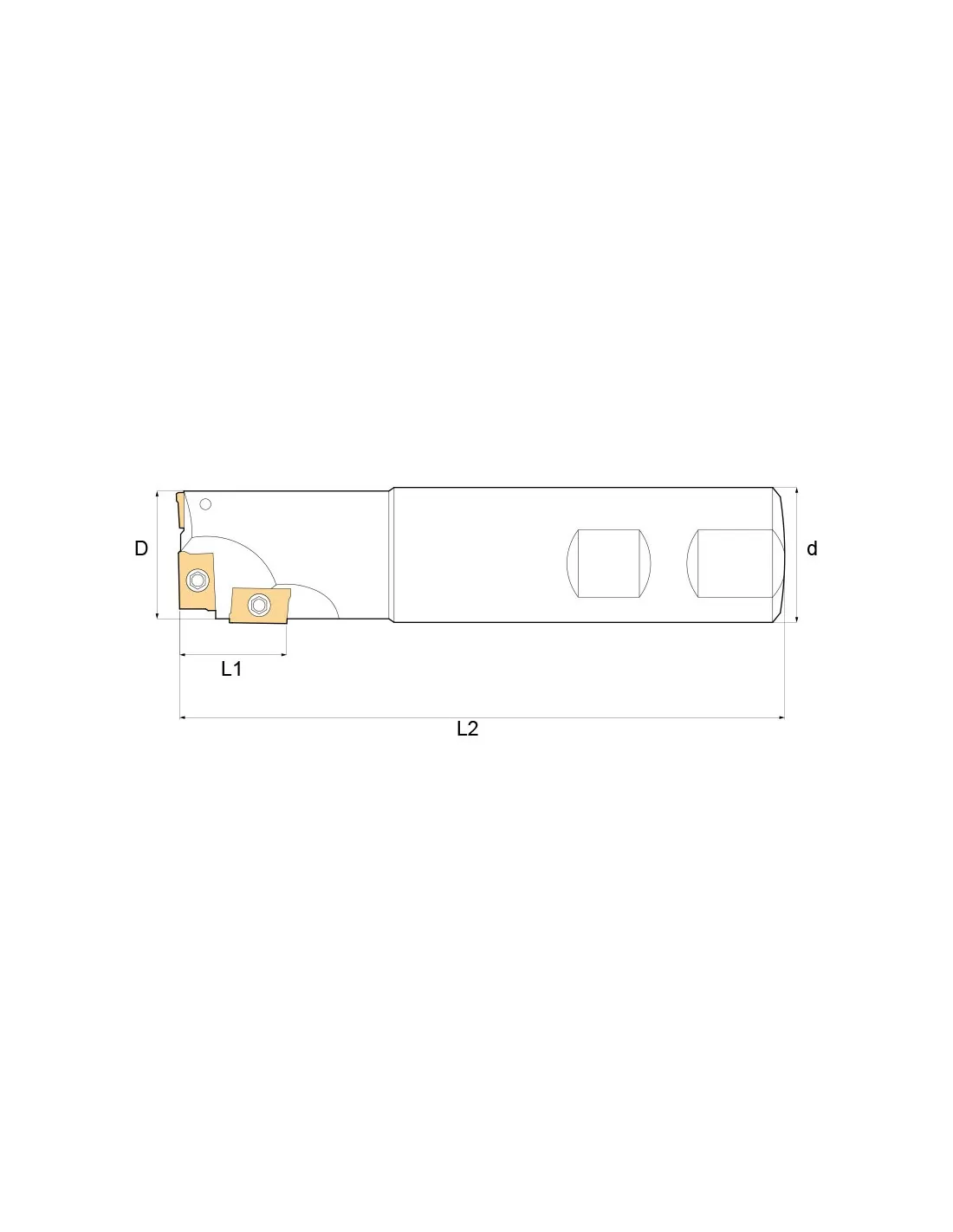 Con taglio frontale forante per esecuzione di cave, con attacco cilindrico. Permette di realizzare cave dal pieno.