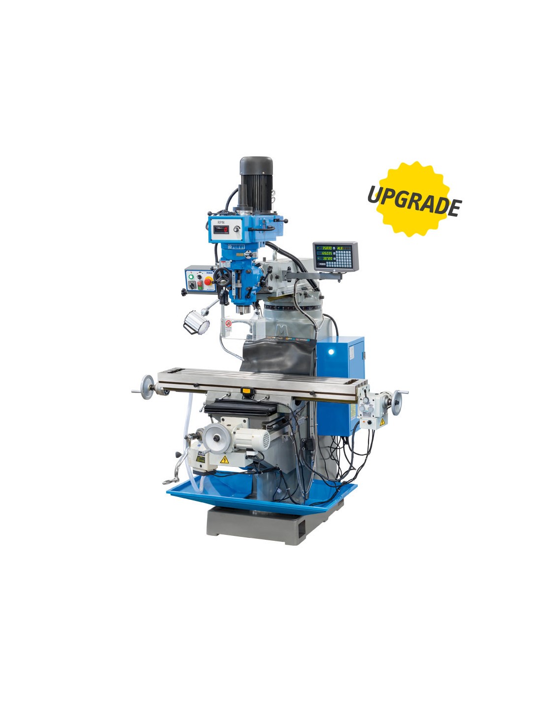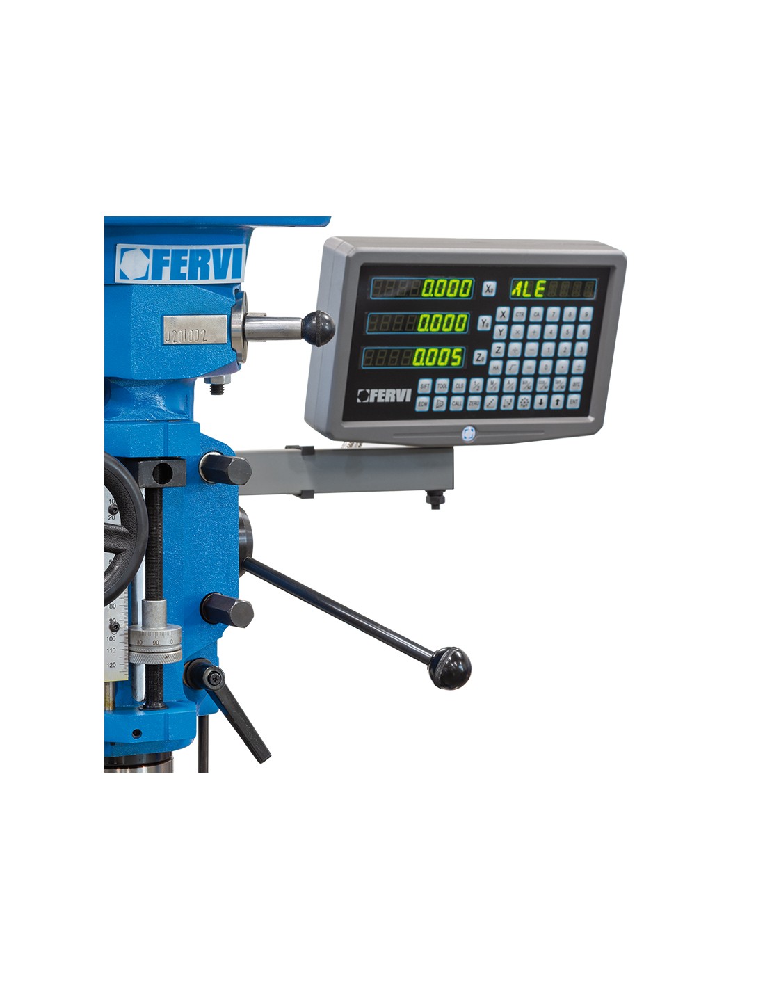 ISO 40, con discesa automatica, tavola a croce motorizzata su tutti gli assi, visualizzatore a 3 assi e inverter giapponese.