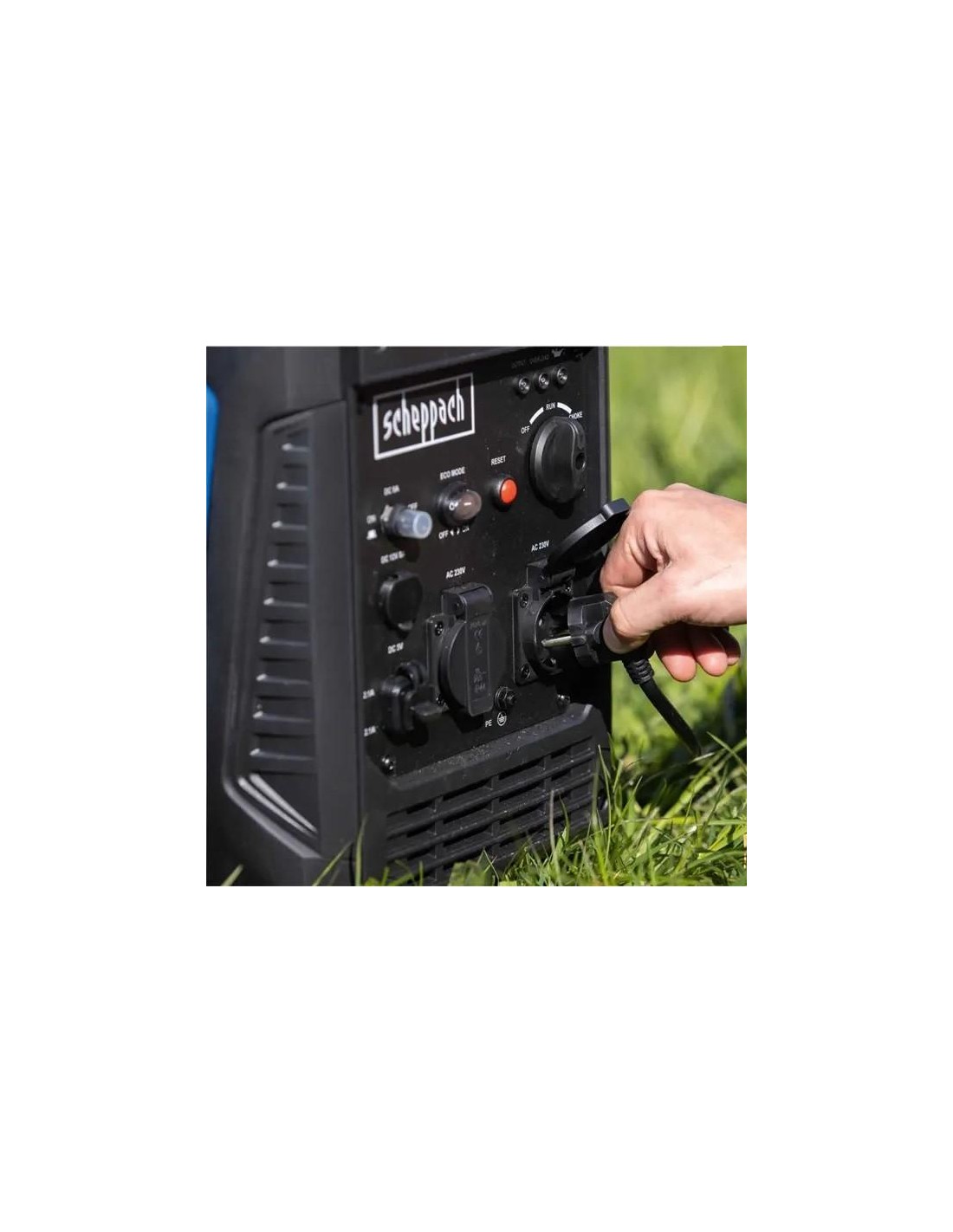 Il generatore di corrente inverter Scheppach SG3500i fornisce elettricità ovunque sia necessaria una produzione di energia indipendente: a casa propria, in giardino, in campeggio, in occasione di eventi o in viaggio. La tecnologia inverter garantisce elettricità pulita senza sbalzi di tensione e ad una frequenza ideale. Grazie ad un avvolgimento multipolare al suo interno, la tensione di corrente alternata generata viene prima convertita in tensione continua, poi in tensione alternata con una curva sinusoidale pulita. Ciò significa che è possibile utilizzare anche dispositivi elettronici sensibili come smartphone, laptop, tablet o televisori. Il generatore di corrente è alimentato da un motore a benzina a 4 tempi raffreddato ad aria da 3,6 kW o 4,8 CV e una cilindrata di 141 cm3. Il generatore viene alimentato con carburante tramite un serbatoio di benzina da 6,3 litri e fornendo elettricità per diverse ore. Il motore si avvia facilmente utilizzando una puleggia. L'inverter genera una potenza di picco massima di 3500 watt e una potenza massima di 3200 watt. La potenza nominale è di 3000 watt. La protezione da sovraccarico fornisce ulteriore sicurezza. Per un utilizzo flessibile, il generatore è dotato di due prese da 230 V AC, due uscite USB da 5 V DC/2,1 A (ricarica rapida) e una presa da 12 V. Grazie alla modalità di risparmio energetico, l'SG3500i funziona in modo particolarmente parsimonioso: non appena non viene collegata alcuna utenza, il motore gira automaticamente al minimo. Essendo un inverter a bassa rumorosità, l'SG3500i convince anche per il suo livello di rumorosità particolarmente basso. I piedini in gomma e un peso di 22,5 kg garantiscono una posizione stabile durante il funzionamento e allo stesso tempo proteggono dalle vibrazioni. Grazie al design compatto, grande quanto una valigia, in plastica resistente agli urti e alla maniglia per il trasporto, l'SG3500i può essere facilmente trasportato al luogo di utilizzo.