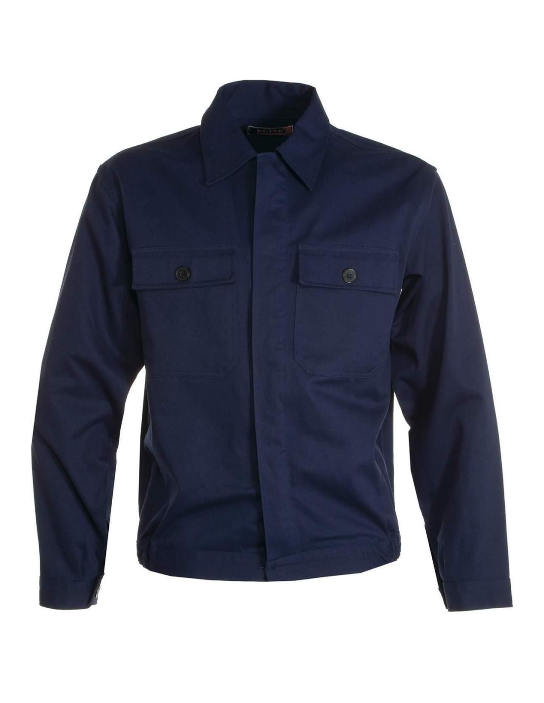 Giubbino con elastici laterali in vita, chiusura a bottoni coperta, polsini con bottone, due tasche frontali applicate con patta e bottone.