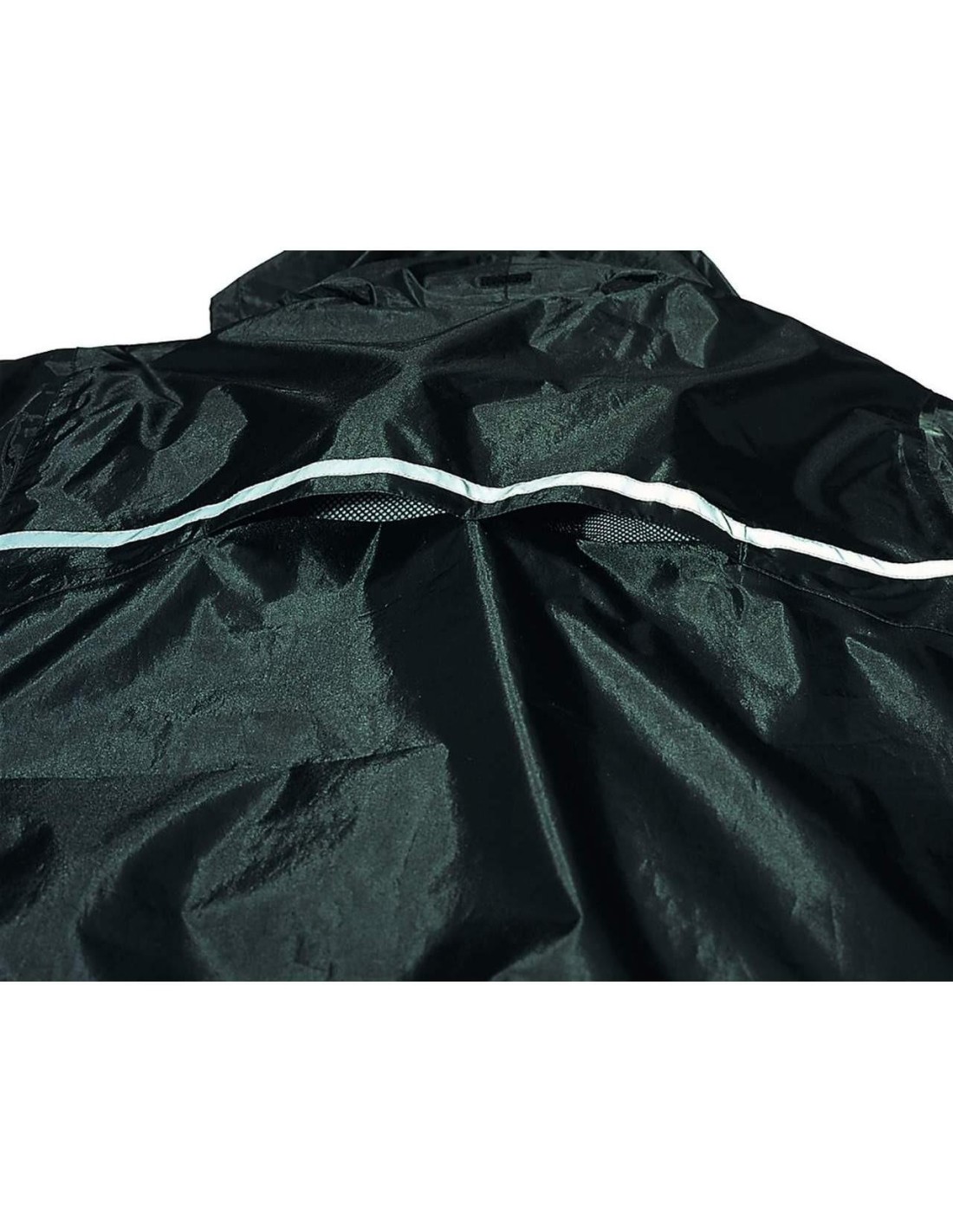 Mantello da pioggia. Cuciture impermeabili. Chiusura zip anti-freddo sotto baverina stringente.