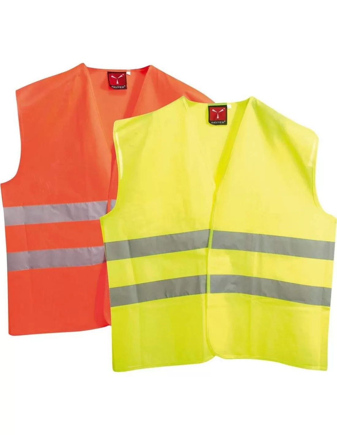 Gilet in alta visibilità con bande riflettenti, chiusura con velcro, completamente bordato.
