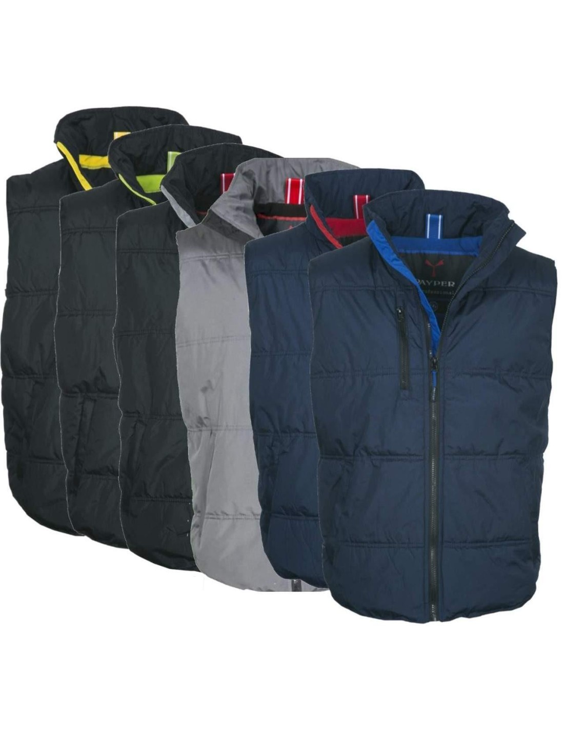 Gilet imbottito sagomato, due tasche laterali con zip ,una tasca al petto con zip , interno pile in contrasto .