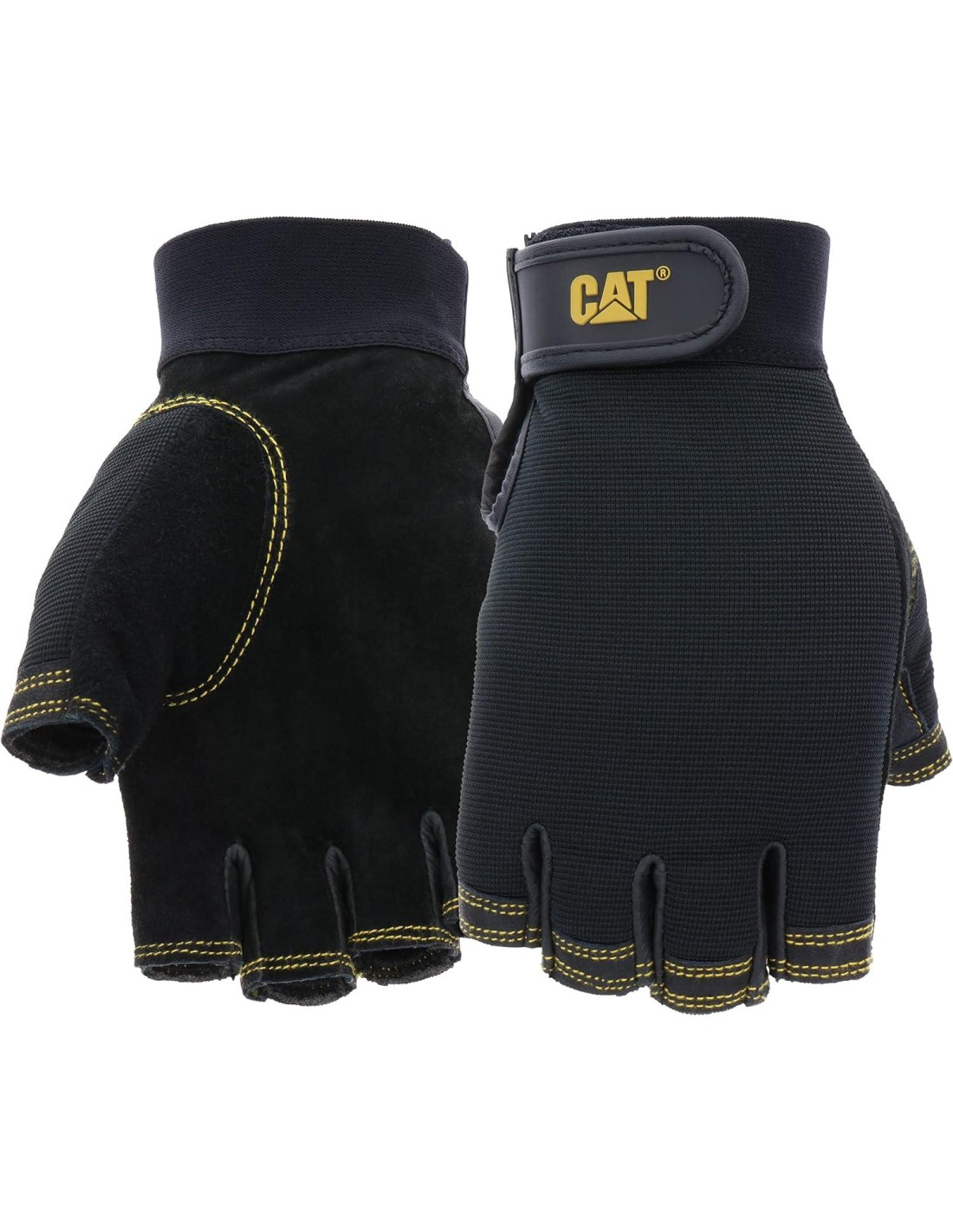 I guanti da lavoro della CAT a mezze dita, sono formati stati fatti in pelle di maialino per poter favorire la flessibilità durante i numerosi lavaggi che subiranno. Hanno una doppia cucitura di colore giallo ocra nelle aree di maggiore usura per fornire una durabilità prolungata e si utilizzano solitamente per i lavori più leggere e dove l’utilizzo del palmo della mano è elevato e si cerca la possibilità di avere le dita libere. Solitamente questi guanti sono impegnati durante l’utilizzo di grandi macchinari, dove il contatto del polpastrello del dito è fondamentale per poter mettere in funzione il nostro macchinario. Il polsino elastico presenta una chiusura in velcro. La parte posteriore in poliestere/spandex traspirante, segue il naturale movimento della mano, favorendone l’utilizzo e l’adattabilità.