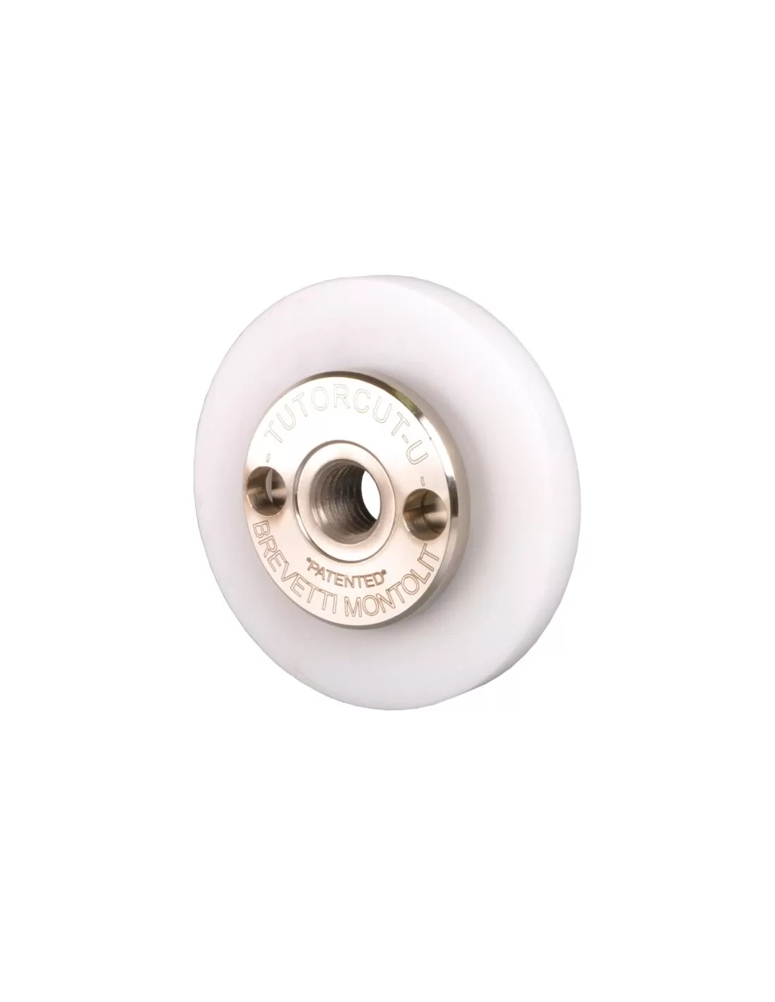 L’appoggio-guida di TutorCut, totalmente svincolato dalla rotazione dell’utensile, è realizzato in uno speciale Poliammide neutro per essere resistente all’usura ed evitare qualsiasi graffio alla superficie di lastre o piastrelle anche le più delicate e ruota su un cuscinetto a sfere sigillato a prova di polvere e detriti.