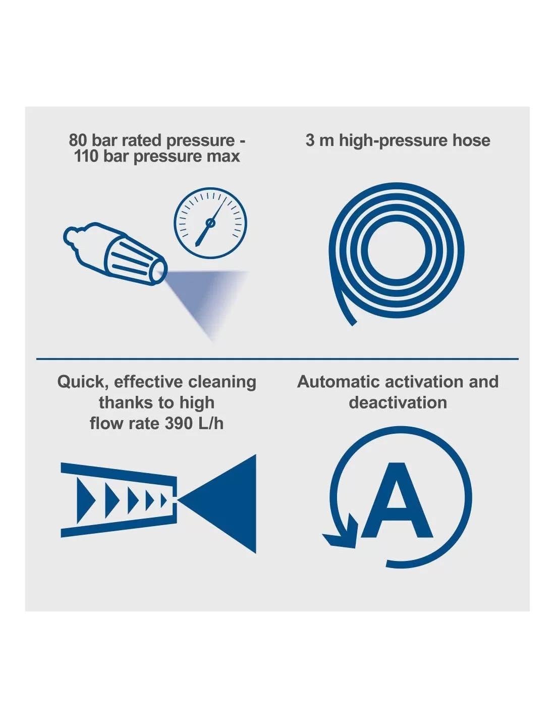 - Ampio raggio di lavoro, grazie al tubo ad alta pressione da 3 m