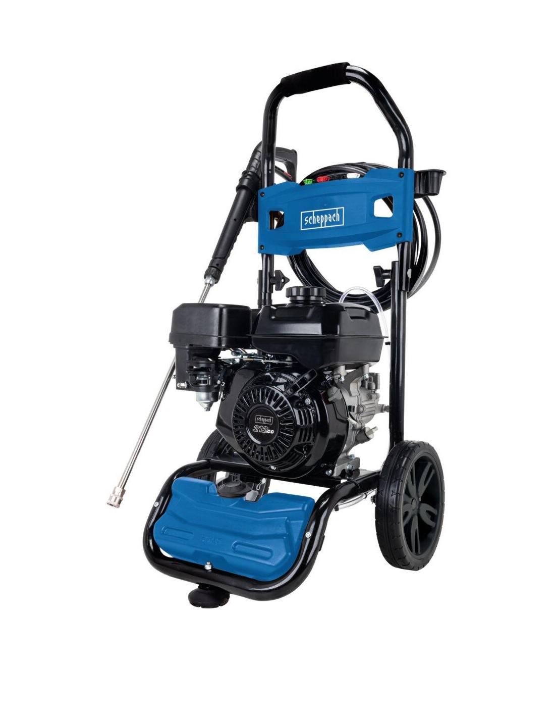 La potente idropulitrice a scoppio da 212 cc HCP5000 della Scheppach è l'alleata ideale per la pulizia di cortili, giardini e cantieri. Dotata di un motore a benzina a 4 tempi da 5,9 HP (4,3 kW), raggiunge una pressione massima di 241 bar, garantendo risultati impeccabili anche nelle condizioni più difficili. Il sistema a click rapido permette di cambiare facilmente le diverse testine in dotazione, mentre la lancia in acciaio inossidabile di alta qualità assicura una lunga durata. Con un tubo ad alta pressione di 9,2 metri, offre un raggio d'azione ampio e versatile. Le grandi ruote e il manico ergonomico facilitano il trasporto, rendendola ideale per un utilizzo mobile. La costruzione in acciaio rivestito a polvere, resistente alla torsione, e il piede di supporto garantiscono una stabilità sicura durante l'uso. L'idropulitrice viene fornita con quattro attacchi (tre ugelli ad alta pressione: 0°, 25°, 40° e un ugello a bassa pressione o per la pulizia), una lancia per la pulizia e un ago per la pulizia degli ugelli.