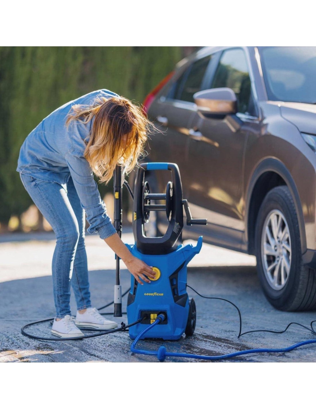 L'idro pulitrice GOODYEAR GY862202, con un potente motore da 2200W, l'idro pulitrice offre una pressione di 170 bar per pulire efficacemente auto, mobili da giardino, terrazze...