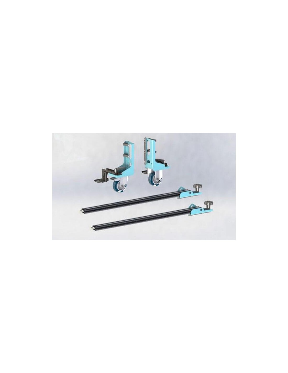 • 2 ruote, comode per spostamenti longitudinali senza sforzi, all'occorrenza le ruote si spostano lungo la struttura in posizione di riposo, una delle quali girevole di 280° e bloccabile con freno a pedale.