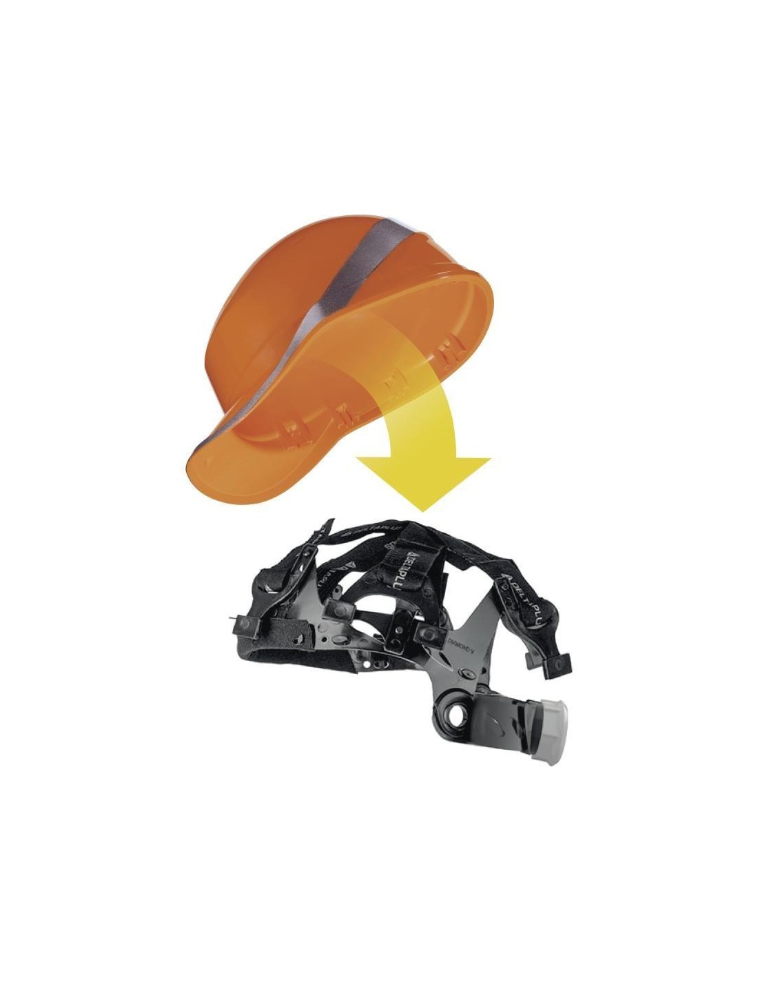 Sacchetto di 10 bardature di ricambio per caschi da elmetto BASEBALL DIAMOND. Include cuffia a fasce tessili, frontalino in spugna e chiusura a pulsante.