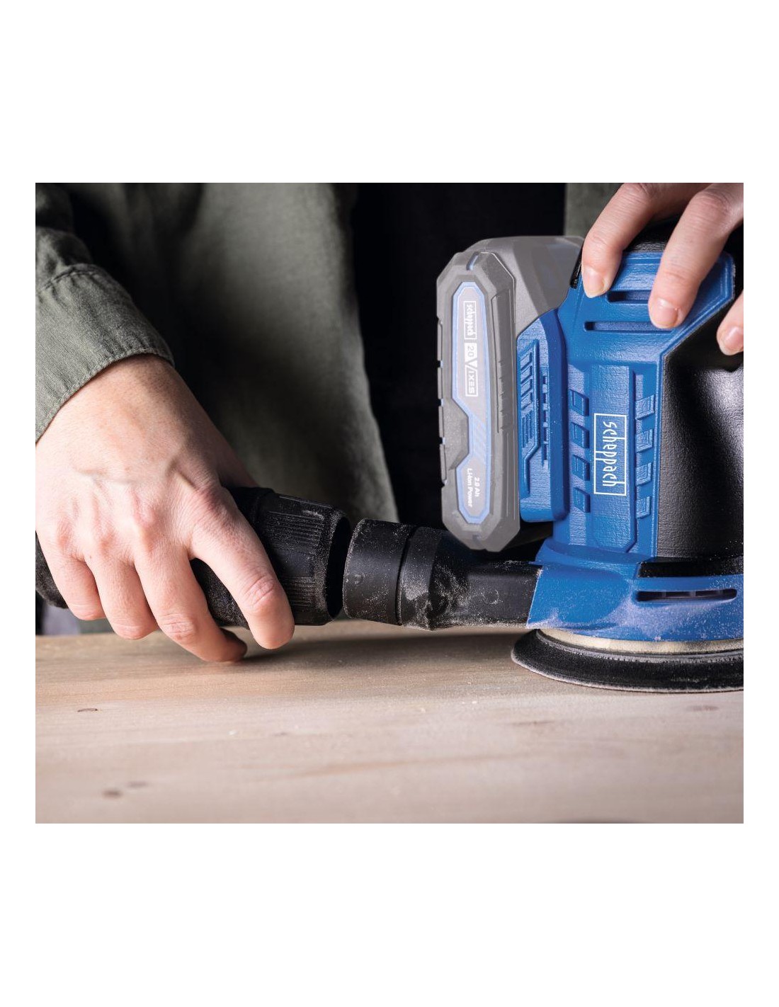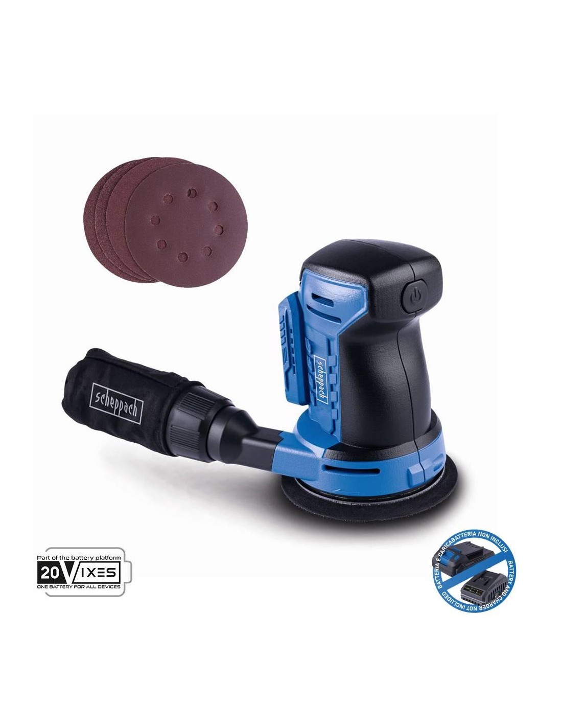 - Lavoro senza filo con la serie Scheppach IXES 20 Volt – tutte le batterie e i caricabatterie appartenenti a questa serie possono essere combinati con la levigatrice orbitale a batteria