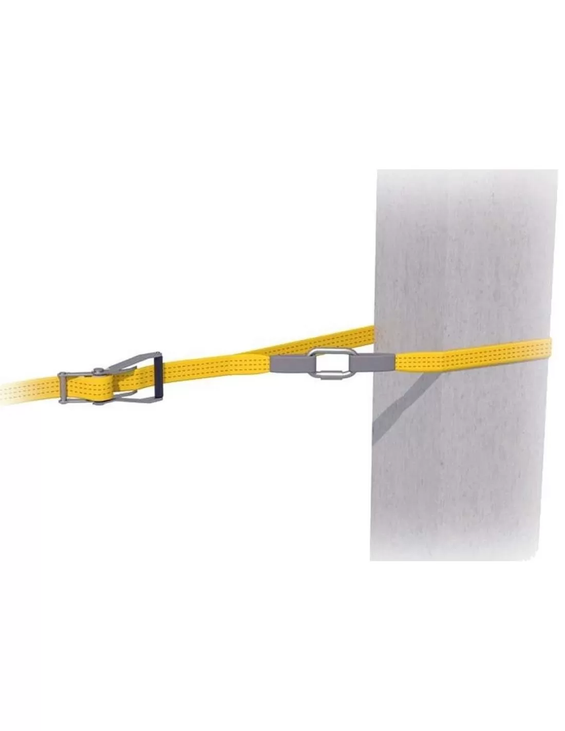 Linea di vita temporanea orizzontale con cinghia certificata per 2 persone. Regolazione della lunghezza e della tensione con un tenditore con gancio di arresto. Con 2 moschettoni AM002. Borsa di custodia e trasporto.
