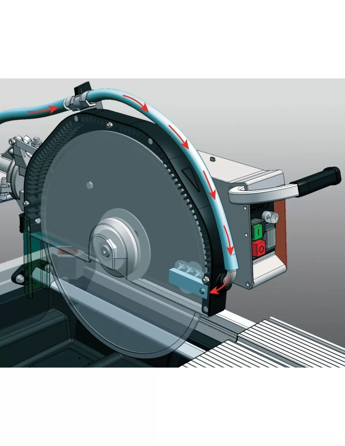 Lavora con acqua. “Spray System” è il sistema brevettato che consente la migliore lubrificazione del disco diamantato, garantendo un più alto rendimento di taglio ed una maggiore durata del diamante.