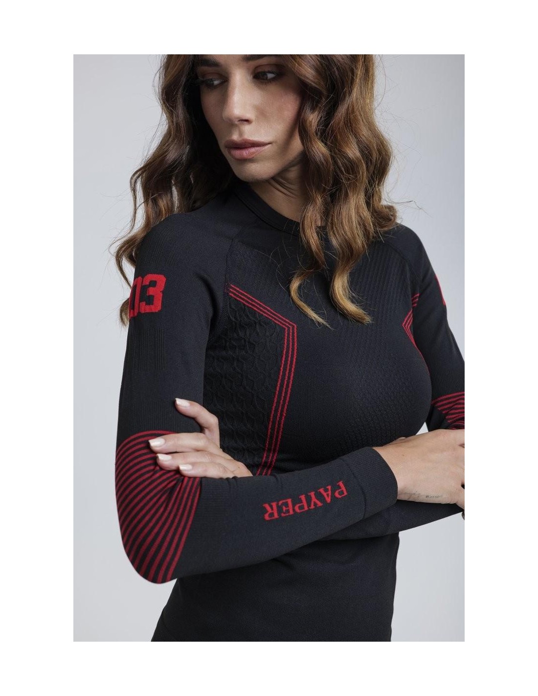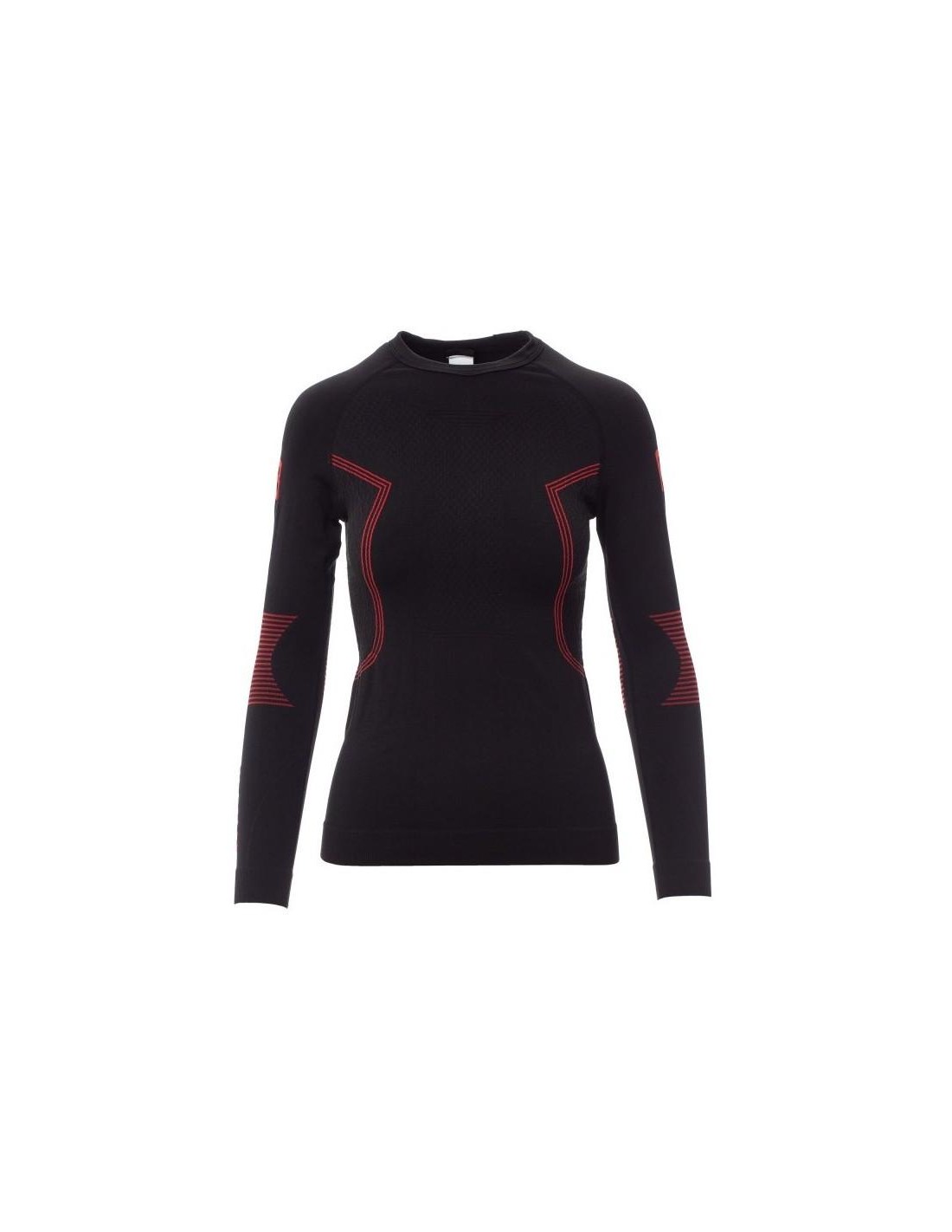 Maglia termica da donna, girocollo, maniche lunghe raglan. Tessuto morbido ed elasticizzato, con speciali tramature sul petto e sulla schiena, motivi ad elica in rilievo sui fianchi, per garantire una corretta traspirazione ed una costante termoregolazione. Collo, fondo e orli maniche a costine dello stesso materiale, per un miglior comfort. Struttura tubolare ergonomica e speciale zigrinatura sui gomiti, per assicurare un perfetto adattamento alla fisionomia del corpo.