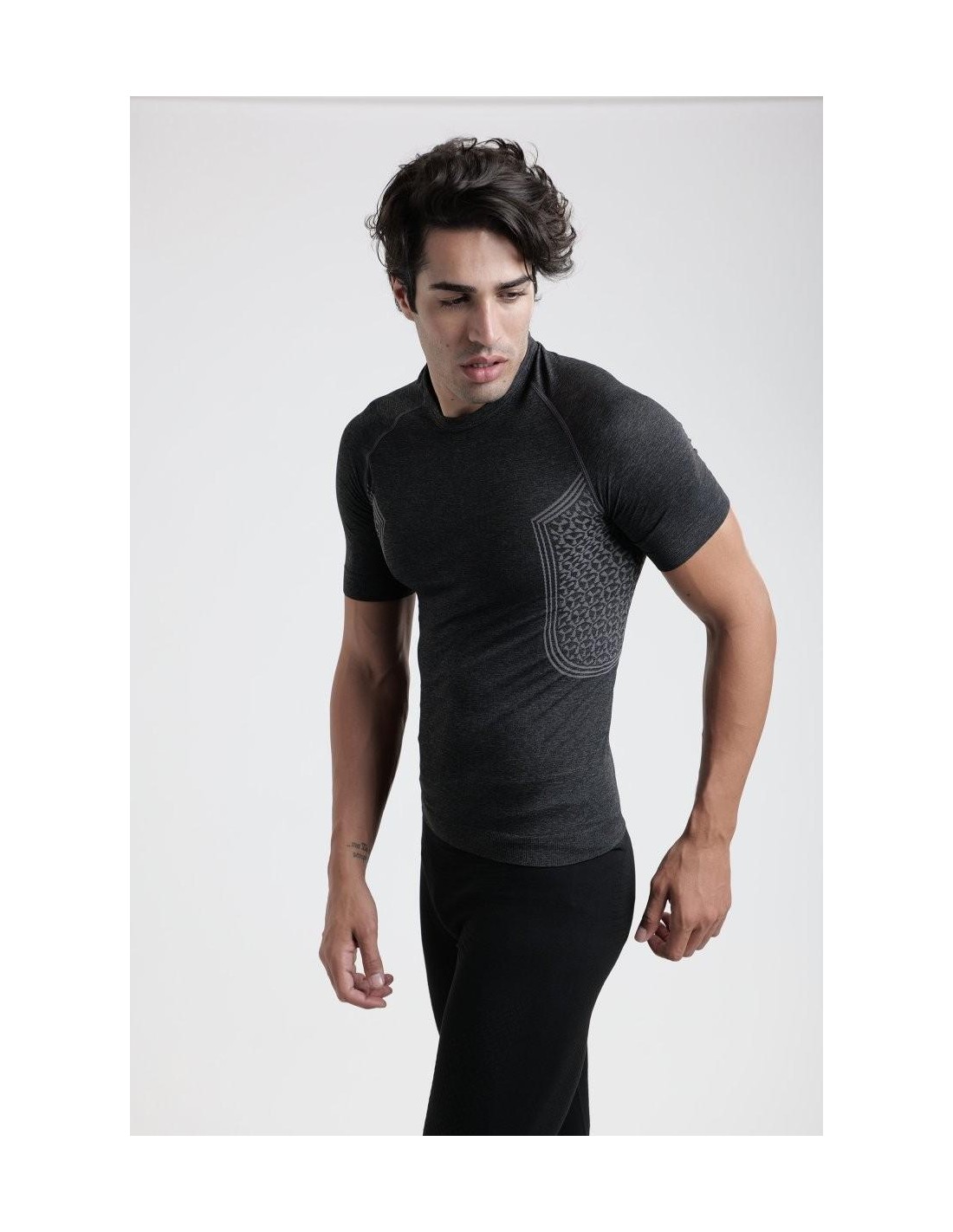 Maglia termica da uomo, girocollo, maniche corte raglan. Tessuto morbido ed elasticizzato, motivi ad elica in rilievo sui fianchi, per garantire una corretta traspirazione ed una costante termoregolazione. Collo, fondo e orli maniche a costine dello stesso materiale, per un miglior comfort. Struttura tubolare ergonomica per assicurare un perfetto adattamento alla fisionomia del corpo.