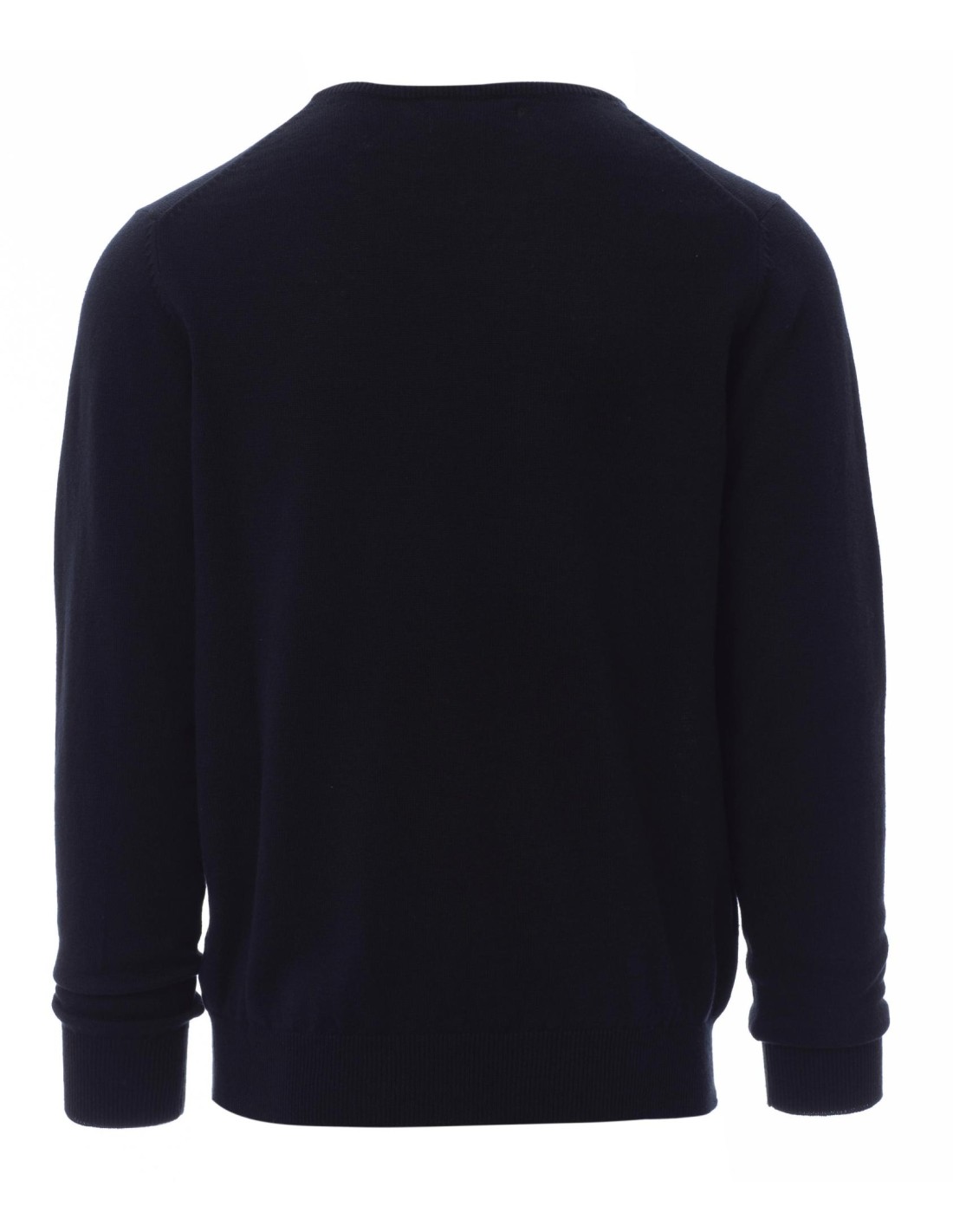 Maglioncino unisex girocollo; collo, polsi e bordi inferiori a costine fini, lavorazione rasato fine e confezione a maglia calata senza cuciture.