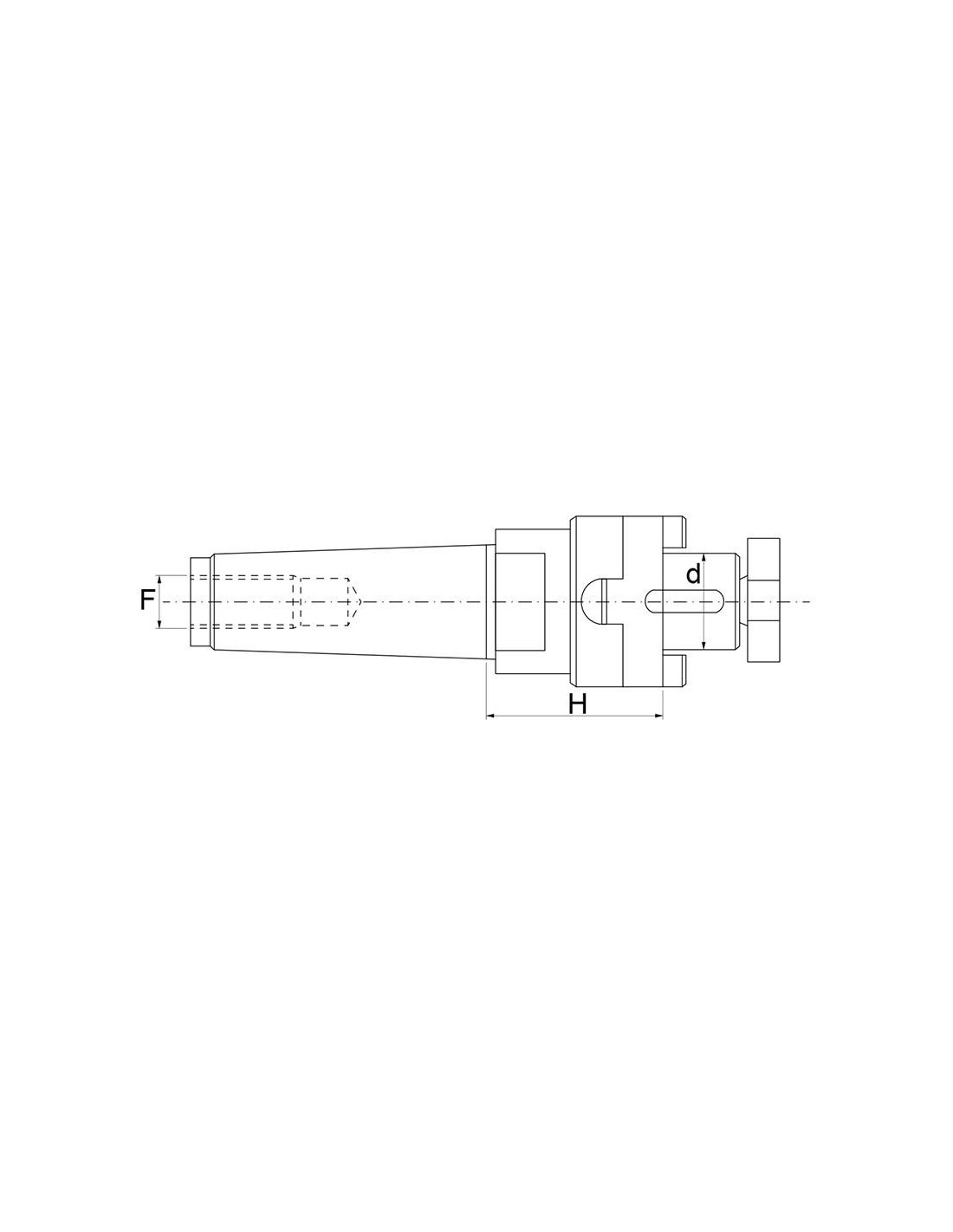 DIN 228/A per frese cilindriche frontali secondo norma DIN 481, per frese con scanalatura longitudinale DIN 1880 e per frese ad inserti DIN 1830. Fornito con vite a croce, anello di trascinamento e chiavetta
