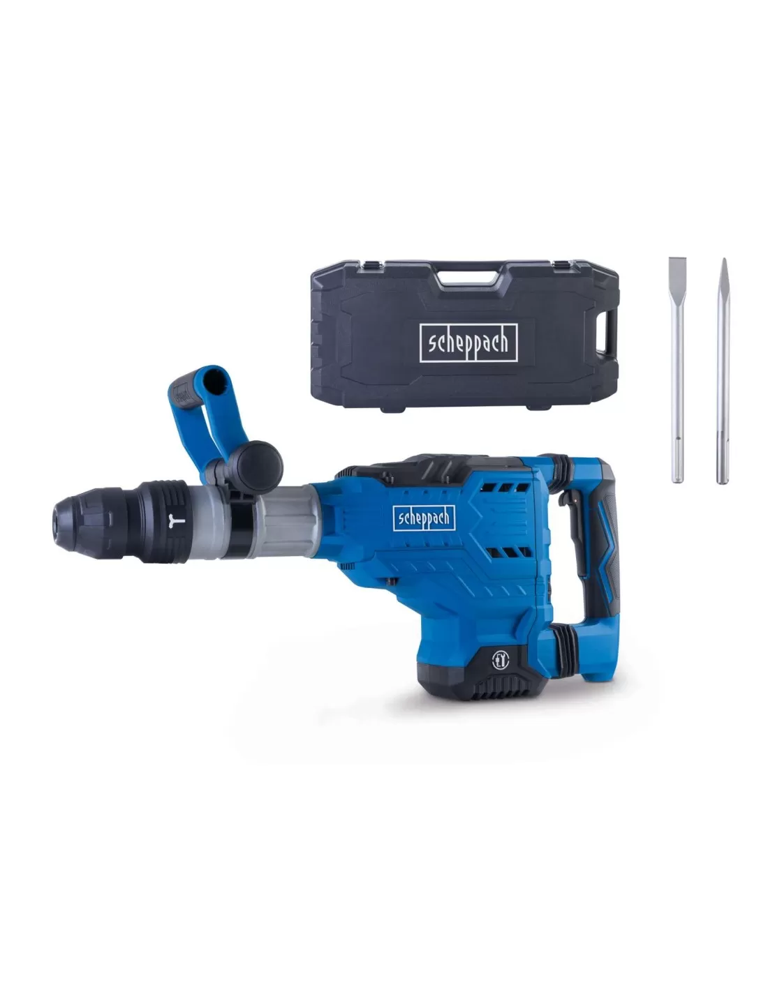 Il martello demolitore Scheppach AB2000 con 60 joule di forza d'impatto, una velocità di colpo di 2100 bpm e il potente motore da 1700 watt è adatto per lavori di demolizione di cemento, pietra o muratura.