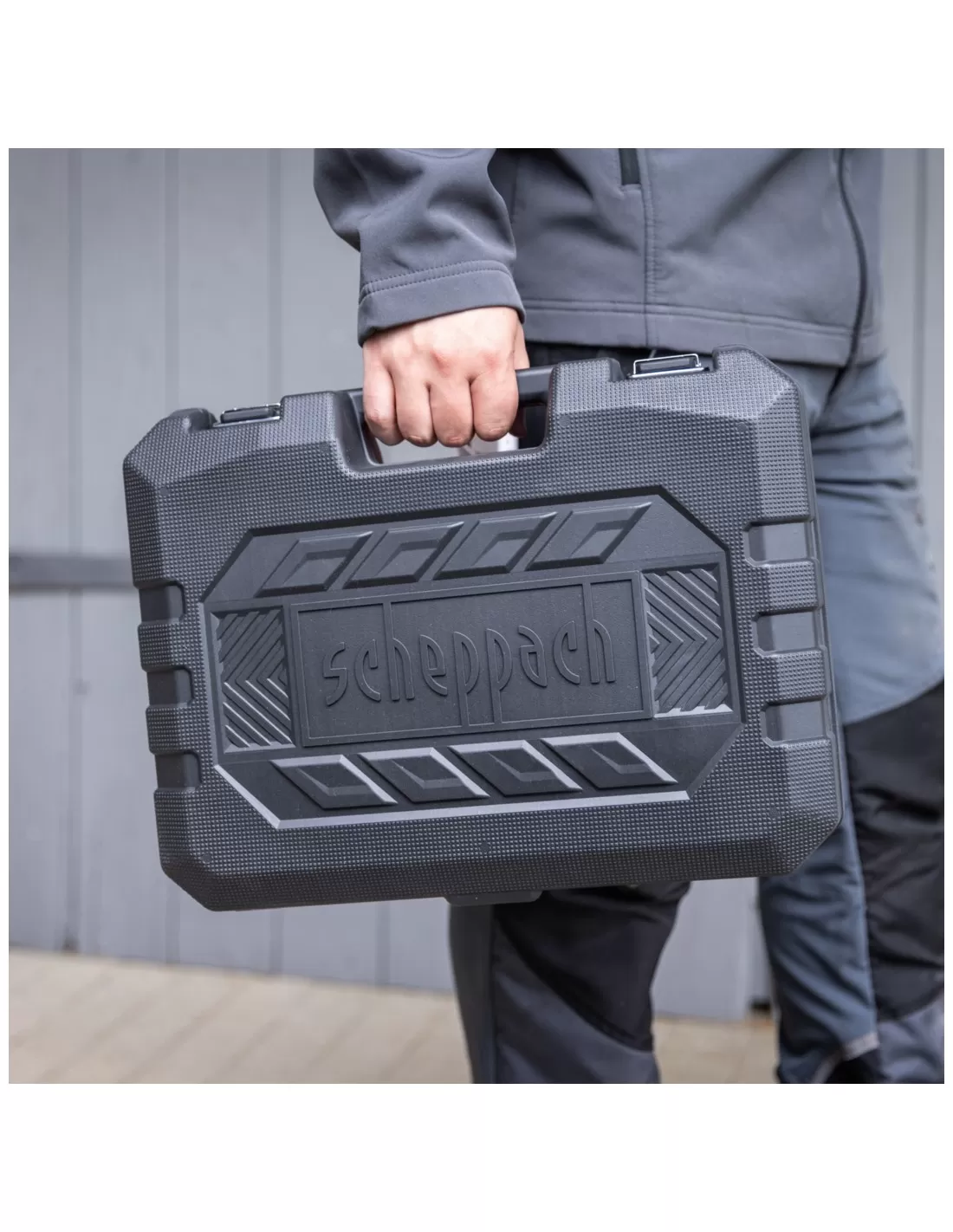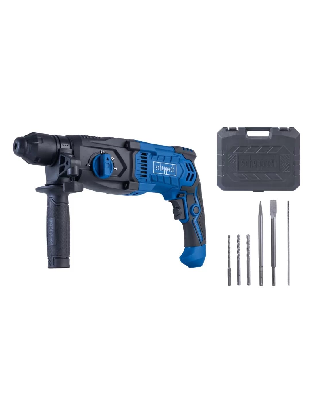 Il potente trapano a percussione elettrico Scheppach DH2260, con la sua pratica funzione 4 in 1, è ideale per lavori intensivi su pietra, cemento, piastrelle o mattoni. Un selettore centrale consente di selezionare rapidamente e facilmente una delle quattro funzioni senza bisogno di attrezzi: foratura senza percussione, foratura a percussione con meccanismo di percussione attivato, scalpellatura con meccanismo di percussione attivato