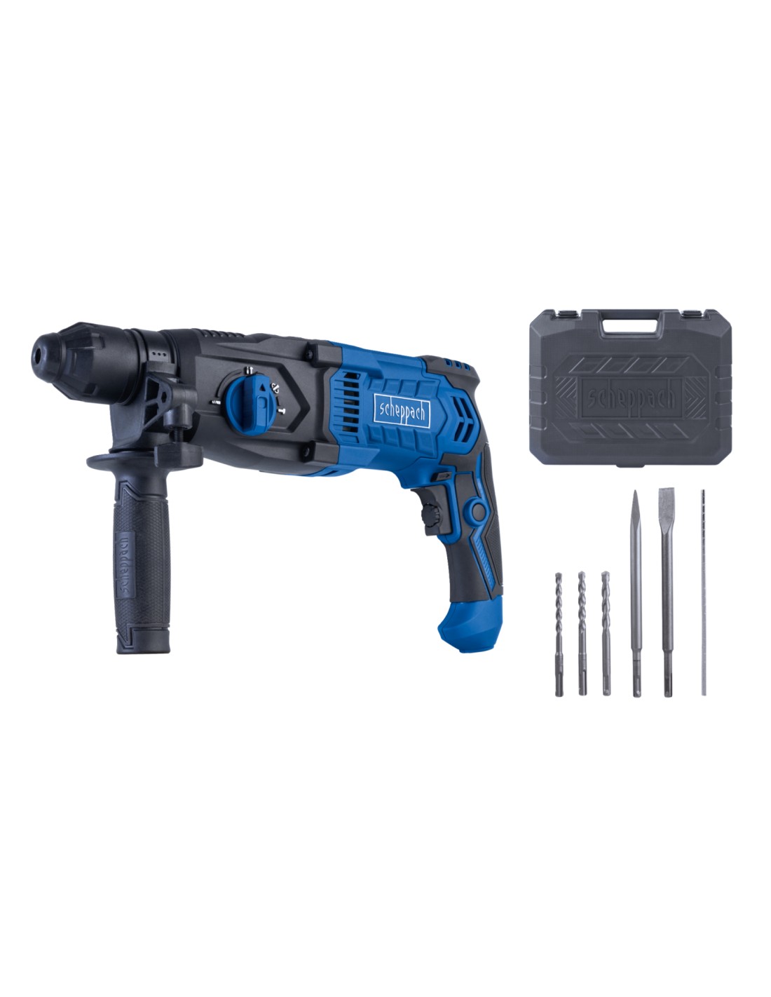 • Include scalpello a punta 14 x 250 mm, scalpello piatto 14 x 250 mm, punta per muratura 6/8/10 x 150 mm,