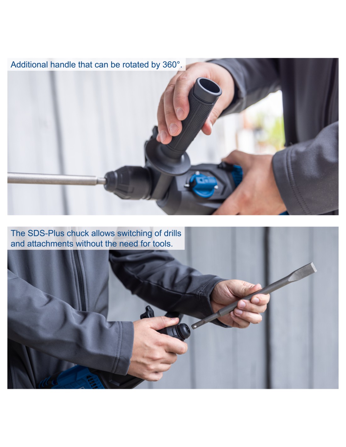 • Il mandrino SDS-Plus consente la sostituzione della punta senza attrezzi.