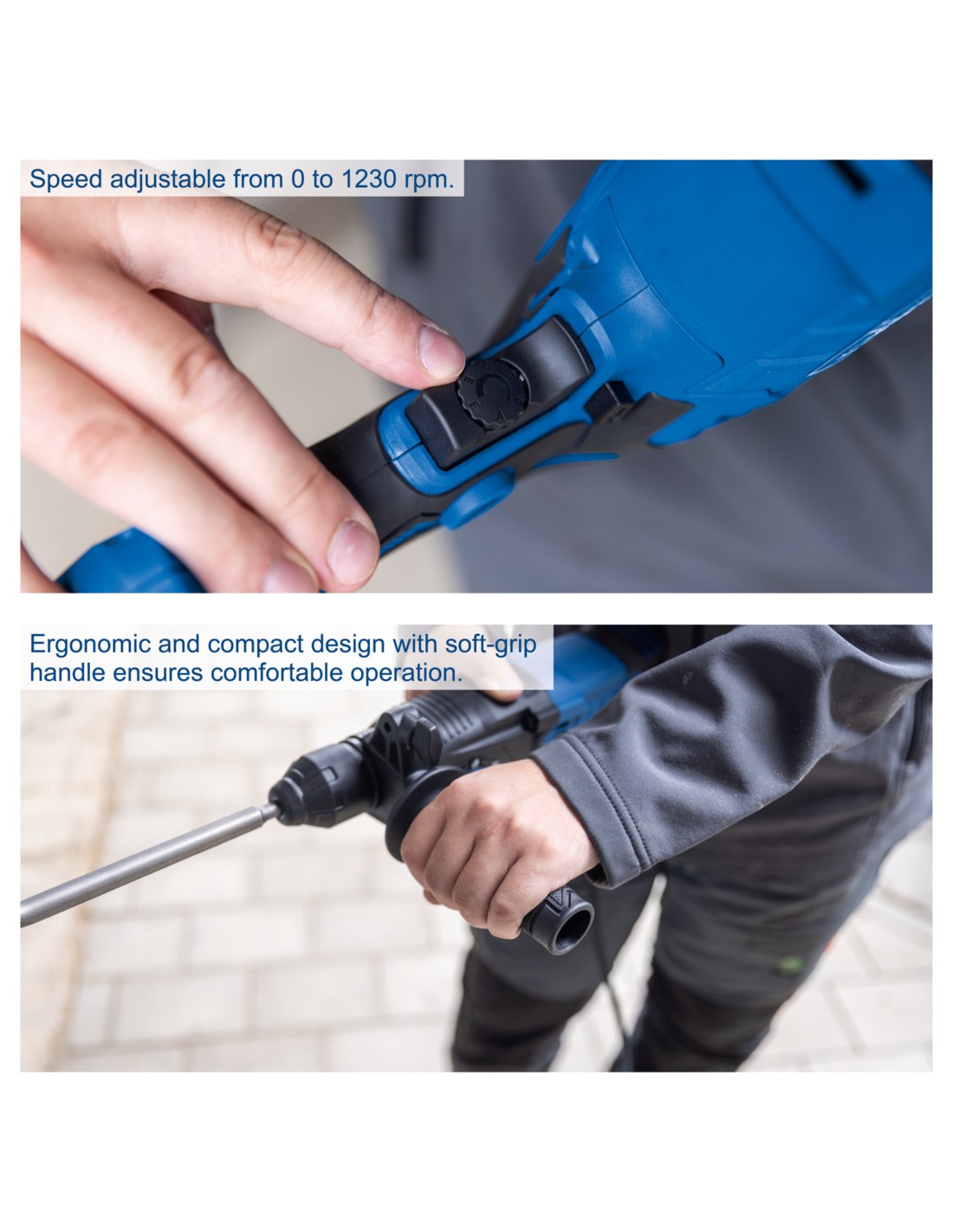 • Design ergonomico e compatto con impugnatura soft-grip per un elevato comfort operativo.