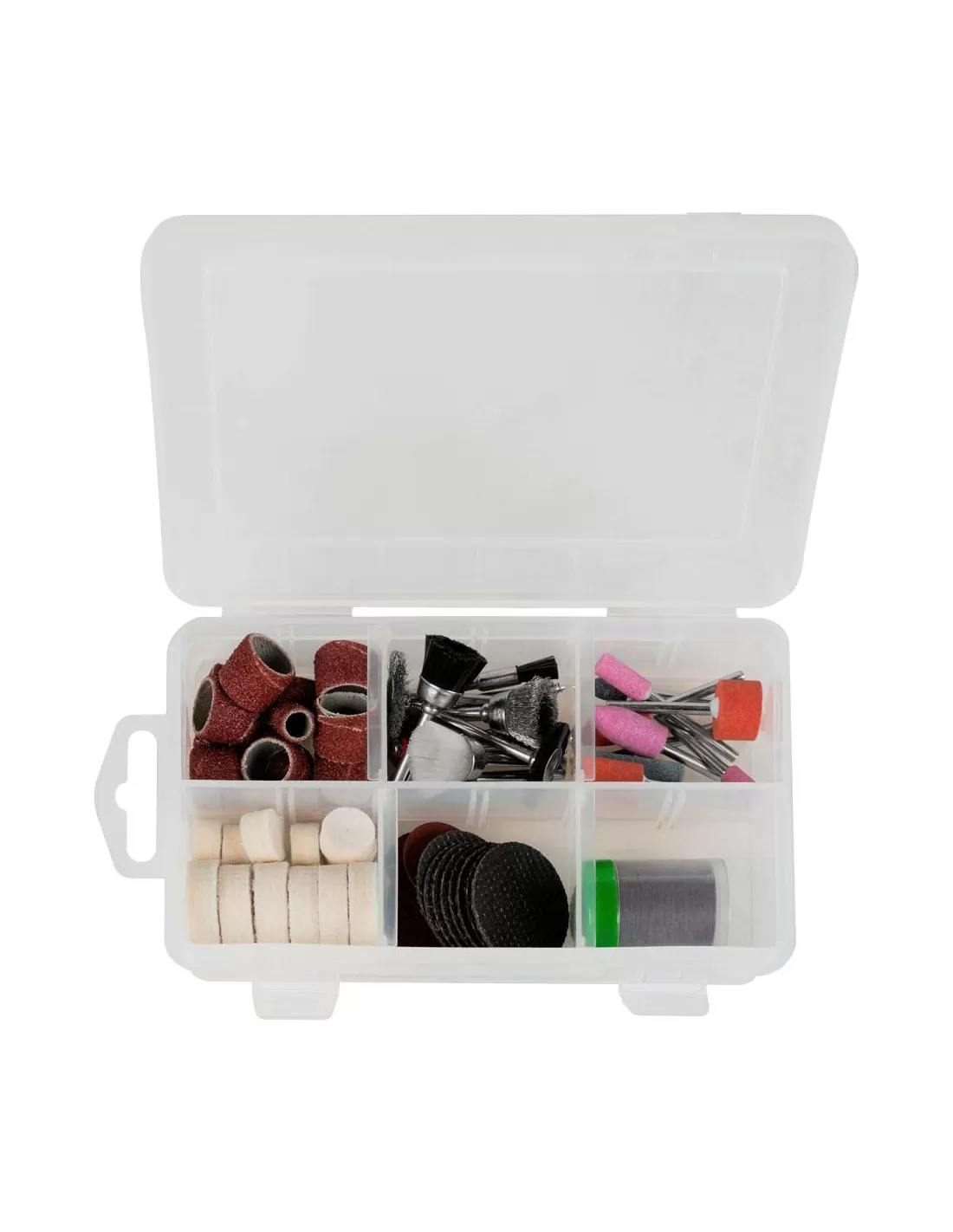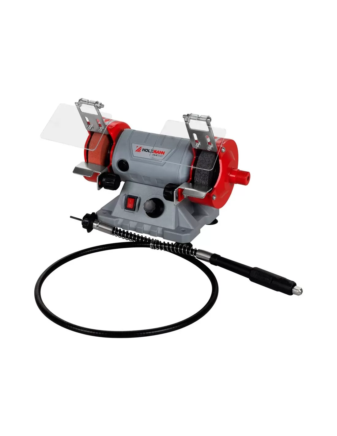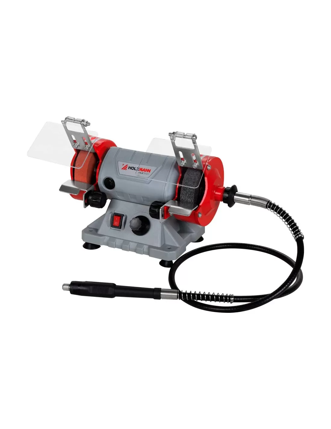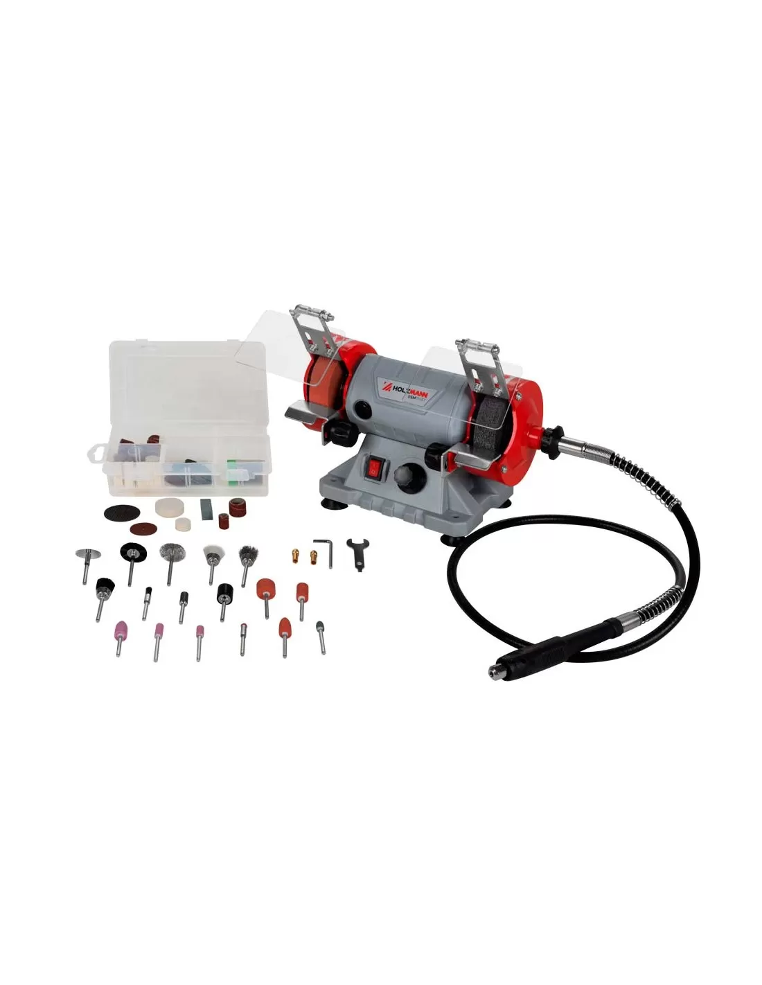 La mini smerigliatrice da banco HOLZMANNN DSM7SET_230V con albero flessibile e set di accessori da 110 pezzi. Un multitalento (affilatura, incisione, levigatura, ecc.) tutto possibile con un unico utensile.