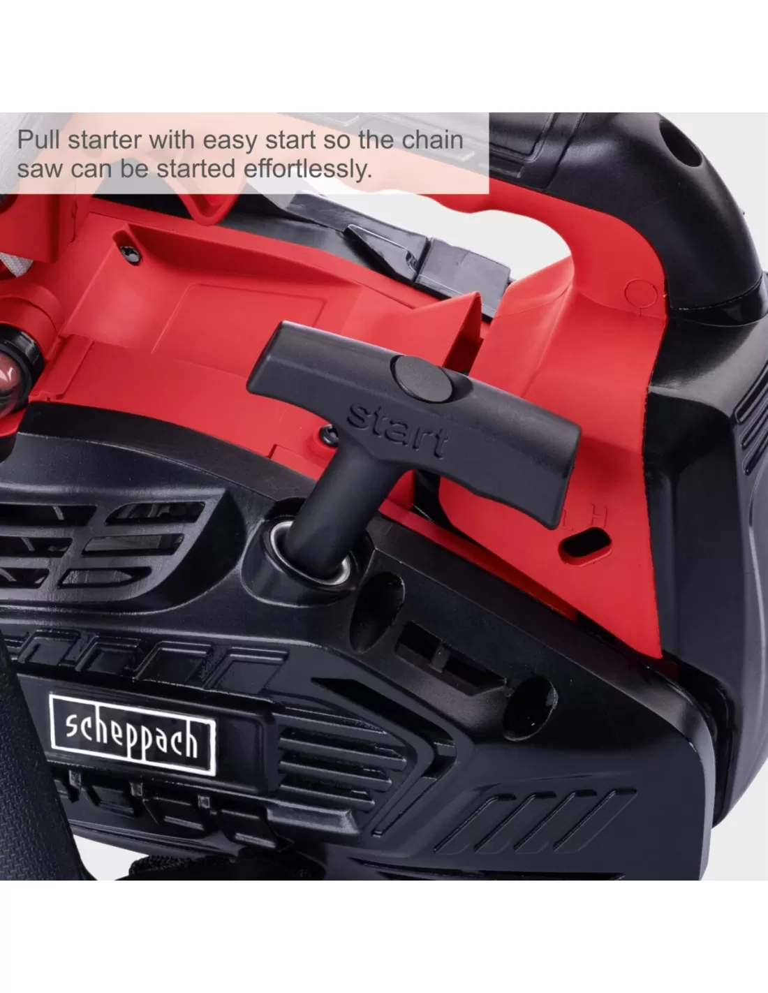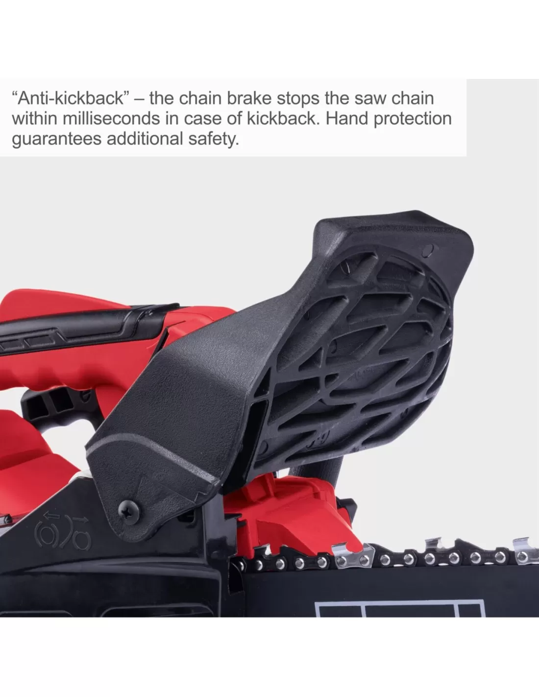 SEGA DA POTATURA A BENZINA DA 25 CM • Sega a benzina ad alte prestazioni per la cura degli alberi, la rimozione delle cime degli alberi o la potatura dei rami • Lama ProCut di alta qualità da 10"/25,4 cm, velocità di taglio di 21 m/s e diametro di taglio effettivo di 20 cm • Motore a benzina a 2 tempi ad alte prestazioni da 0,95 cavalli/0,7 kW, 25,4 cc • Avviamento a strappo con avviamento facilitato in modo che la motosega possa essere avviata senza sforzo • Il freno della catena arresta la catena in pochi millisecondi in caso di contraccolpo • La protezione per le mani assicura maggiore sicurezza - Lubrificazione automatica della catena - Design compatto e peso ridotto di soli 3,5 kg - ideale anche per il funzionamento continuo - Il sistema antivibrante consente di lavorare più a lungo e in modo più rilassato - L'impugnatura ergonomica e circonferenziale consente una varietà di usi - Il robusto arresto ad artiglio protegge il materiale da tagliare dallo scivolamento - Pratico anello per il fissaggio su una corda o una cintura