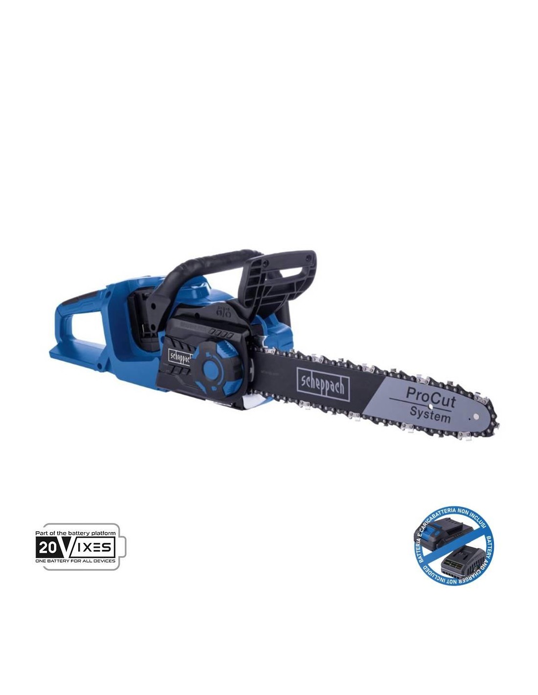 - Lavoro senza fili con la serie Scheppach IXES da 20 volt: tutte le batterie e i caricabatterie della serie di sistemi possono essere combinati con la motosega a batteria