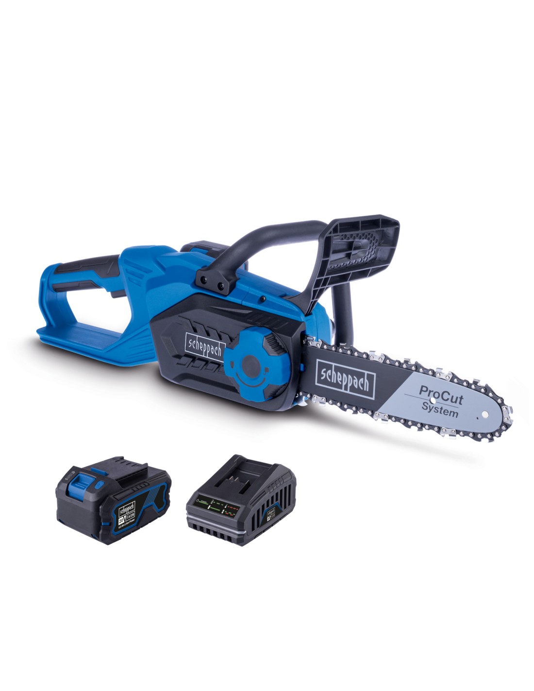 Come parte della serie Scheppach IXES da 20 volt, tutte le batterie e i caricabatteria della serie di sistemi possono essere combinati con la motosega. Batteria e caricabatteria sono disponibili separatamente. Il C-CS254-X viene consegnato con 125 ml di olio per catena e protezione della barra.