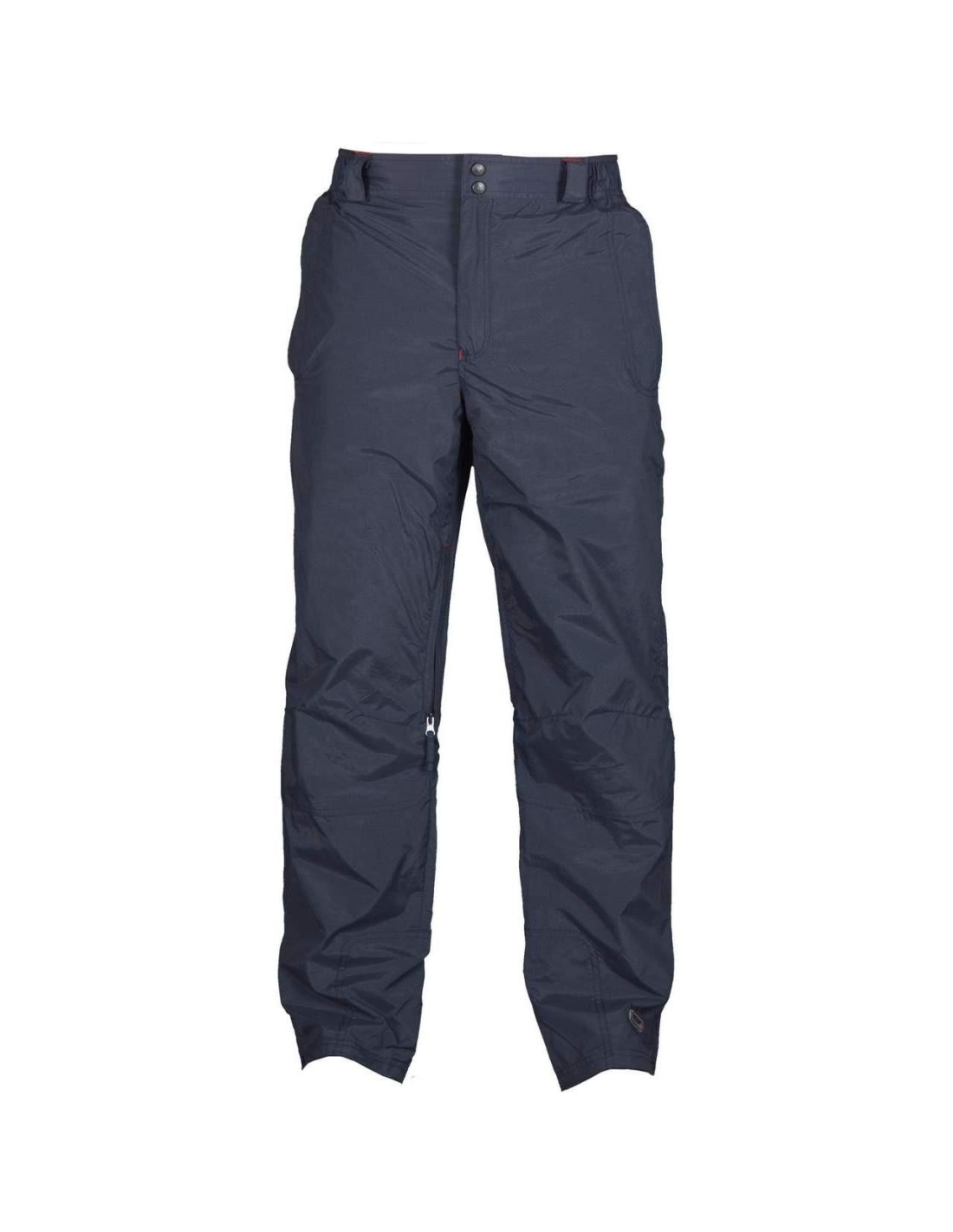 Pantalone in nylon felpato internamente, elastici laterali e passanti in vita, chiusura con zip e due bottoni automatici, due tasche anteriori con zip di chiusura a scomparsa, una tasca posteriore destra con patta e velcro; aperture in interno coscia su entrambe le gambe per areazione con zip e retina di protezione.