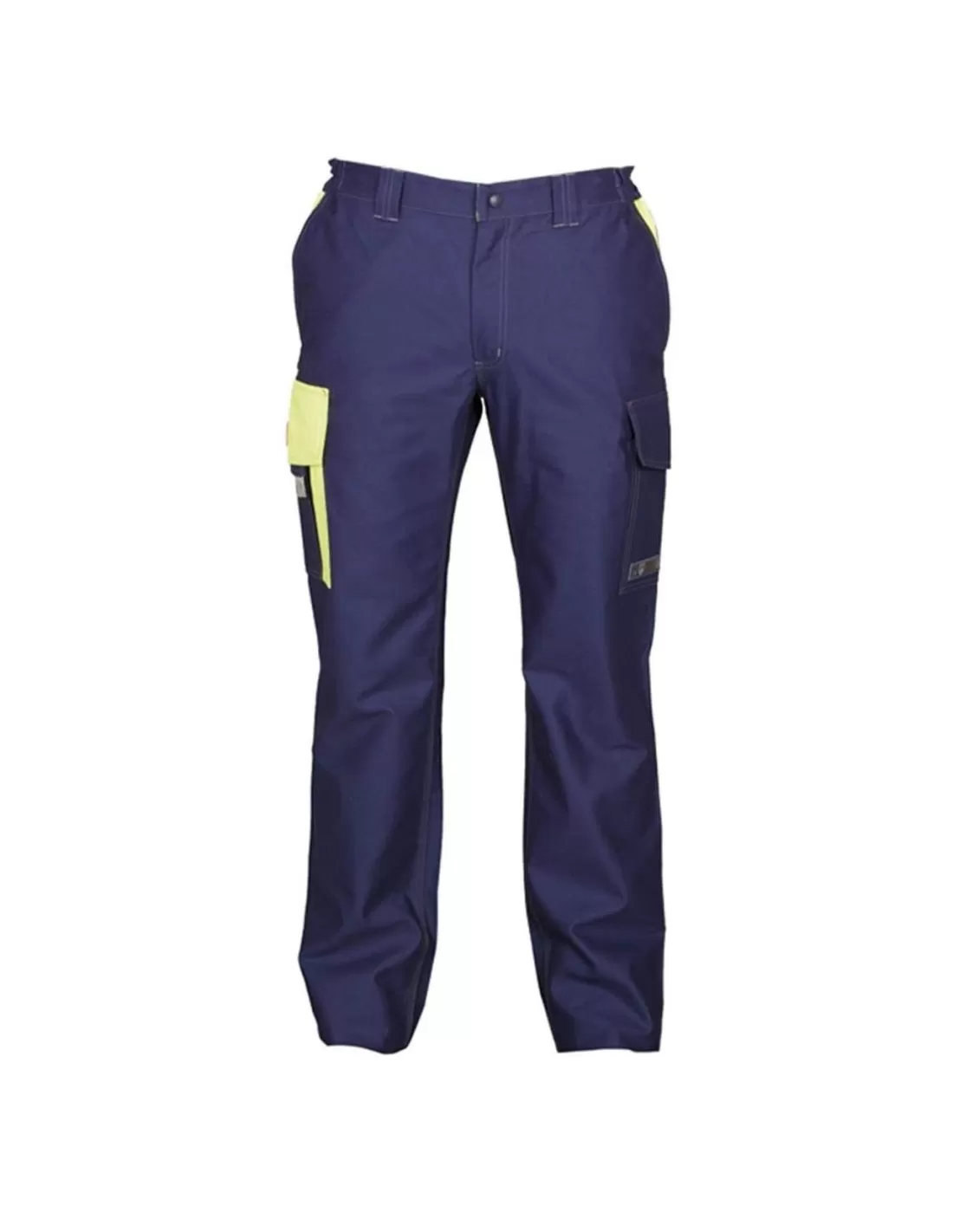 Pantalone Multipro in satin di cotone quadrivalente con tasche multifunzione, chiusura con zip e bottone, taglio slanciato modello jeans e vita con passanti ed elastico ai fianchi; cuciture doppie con filo a contrasto. Tasche anteriori alla francese, due tasche sul retro di cui una a taglio jeans con bande riflettentii ed una con patta e velcro di chiusura; due tasche laterali sinistre, una con patta e velcro e l’altra con zip; una tasca laterale destra con patta e velcro e una tasca portacellulare.