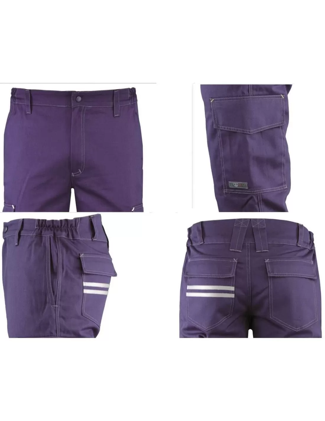 Pantalone Multipro in Twill di cotone quadrivalente (antiacido, antistatica, ignifuga, saldatore, arco elettrico) con tasche multifunzione, chiusura con zip e bottone, taglio slanciato modello jeans e vita con passanti ed elastico ai fianchi; cuciture doppie con filo a contrasto. Tasche anteriori allÔÇÖitaliana, tre tasche sul retro di cui una con fasce e piping riflettenti e due con patta e velcro; due tasche laterali sinistre, una con patta e velcro e lÔÇÖaltra con zip; una tasca laterale destra con patta e velcro e una tasca portacellulare.