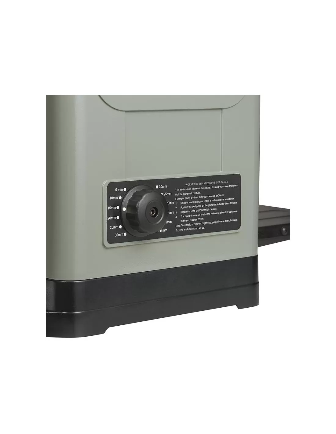 Con piano di lavoro in granito La piallatrice a spessore Fervi è una macchina progettata per piallare una superficie e conferire ad un pezzo di legno uno spessore predeterminato. La macchina è progettata e realizzata per la lavorazione di assi di legno. La piallatrice è costituita da un telaio principale, e piano di lavoro, motore elettrico e relativi rulli di trascinamento, albero pialla a due lame (utensili da taglio), comandi di avvio / arresto e dispositivi di regolazione dello spessore. Il motore lavora a velocità costante: non è prevista la regolazione della velocità di rotazione. La piallatrice deve tassativamente essere collegata ad un dispositivo di aspirazione polveri prima di ogni utilizzo. Il dispositivo di aspirazione deve essere percorso da una corrente d’aria con velocità minima pari a 20 m/s.