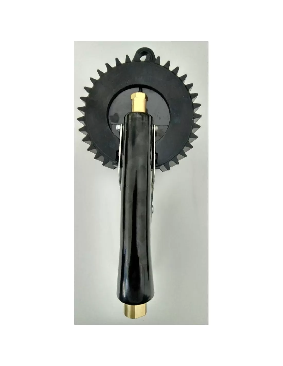 Il quadrante protetto da una lastra trasparente é interamente avvolto da una copertura in gomma. Il manometro molto ampio (80mm) e con ago di indicazione professionale consente un ottimo grado di precisione durante l’utilizzo.