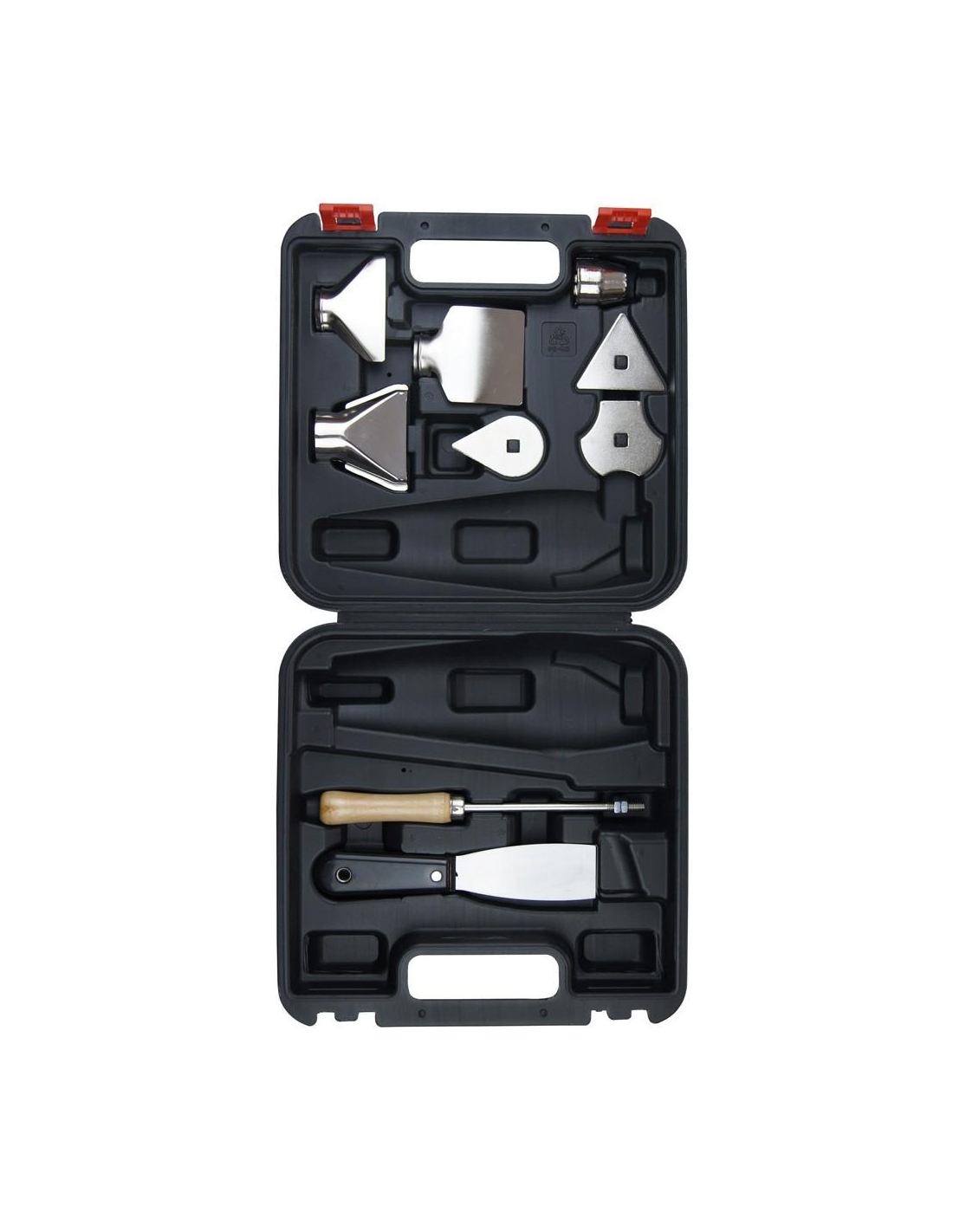 Lo sverniciatore è fornito in una pratica valigetta e compreso di accessori (diffusori, diffusore-spatola, raschietto)
