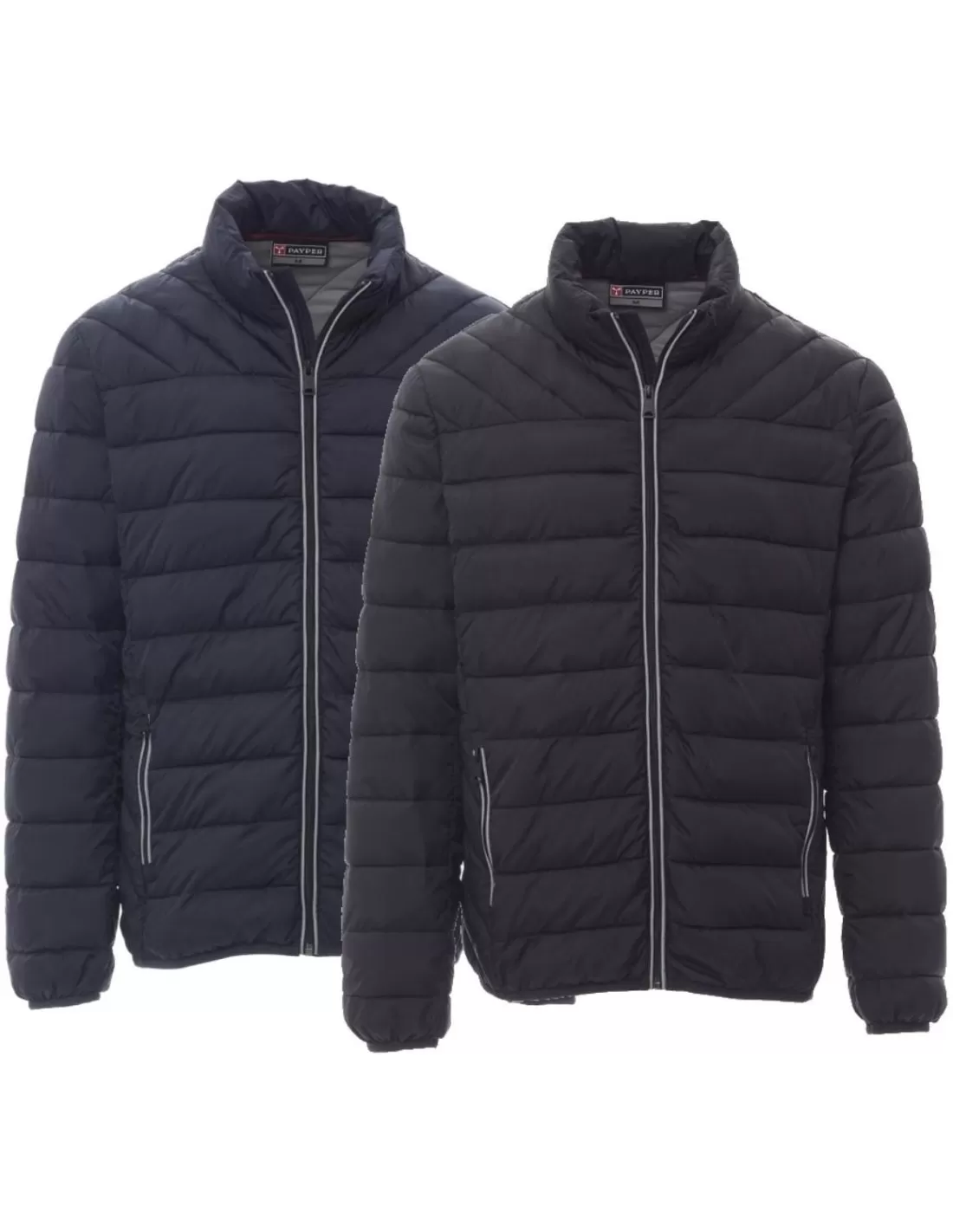 Giubbino/piumino da uomo , zip 5mm in plastica con cursore in metallo, fine bordino ai polsi e in vita, due tasche esterne. Interno: imbottito di poliestere effetto piuma, due tasche.