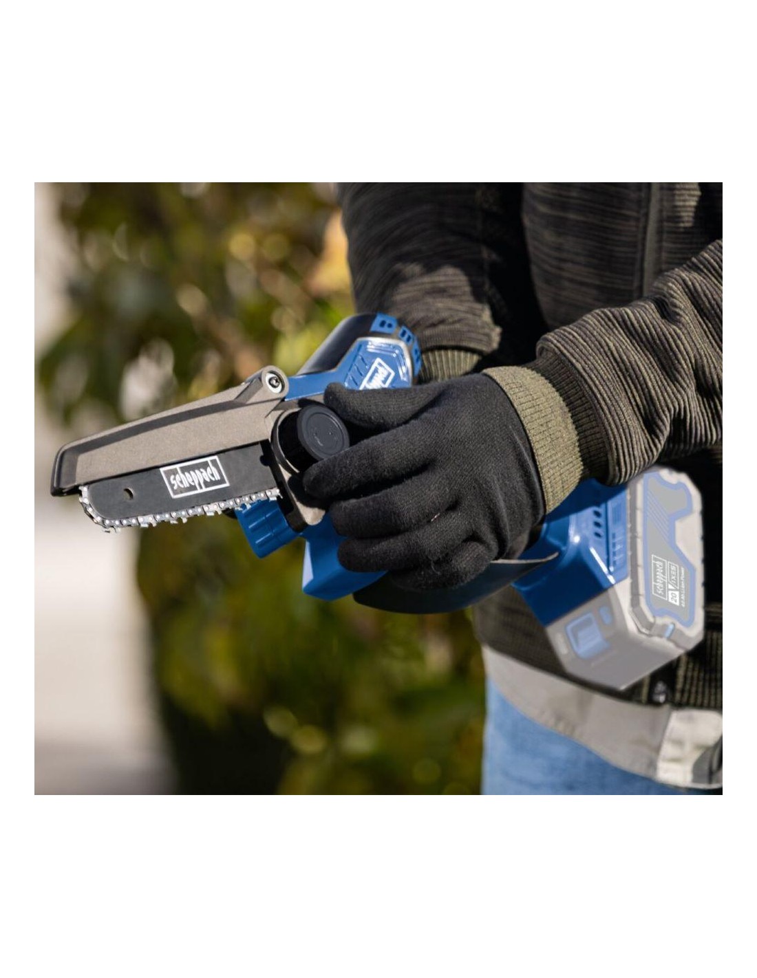 Il potatore a batteria Scheppach BC-PS150-X è ideale per tagliare e accorciare rami di diverse dimensioni. Uno spessore di taglio di 150 mm e una velocità di taglio di 6,8 m/s consentono di segare anche rami più spessi e facilitano anche il diradamento di rami fitti. La protezione integrata per mano e catena consente una manipolazione sicura. Il BC-PS150-X è alimentato da un potente motore brushless. Questo motore senza spazzole garantisce un'efficienza particolarmente elevata, una maggiore autonomia, una lunga durata e una minore usura. Come parte della serie Scheppach IXES da 20 volt, tutte le batterie e i caricabatteria della serie di sistemi possono essere combinati con il taglialegna. Batteria e caricabatteria sono disponibili separatamente.