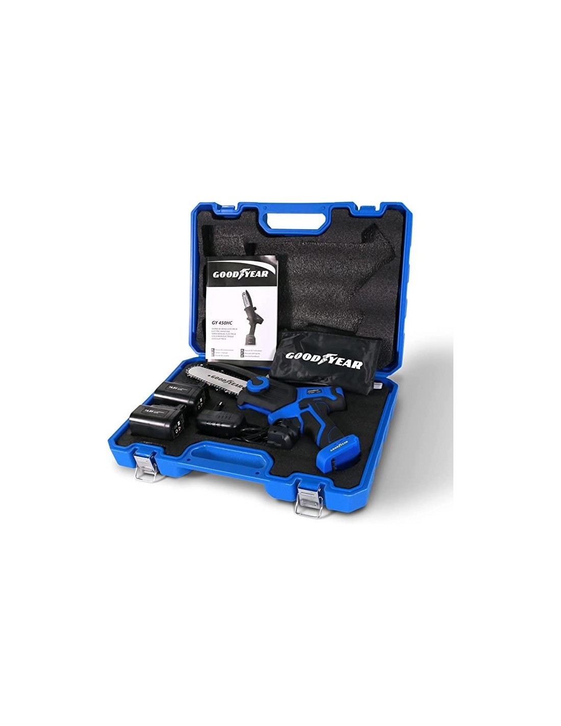 Questa sega da potatura elettrica di Goodyear include 2 batterie da 16,8 V. Si tratta di una sega da potatura elettrica in grado di erogare una potenza massima fino a 450W.
