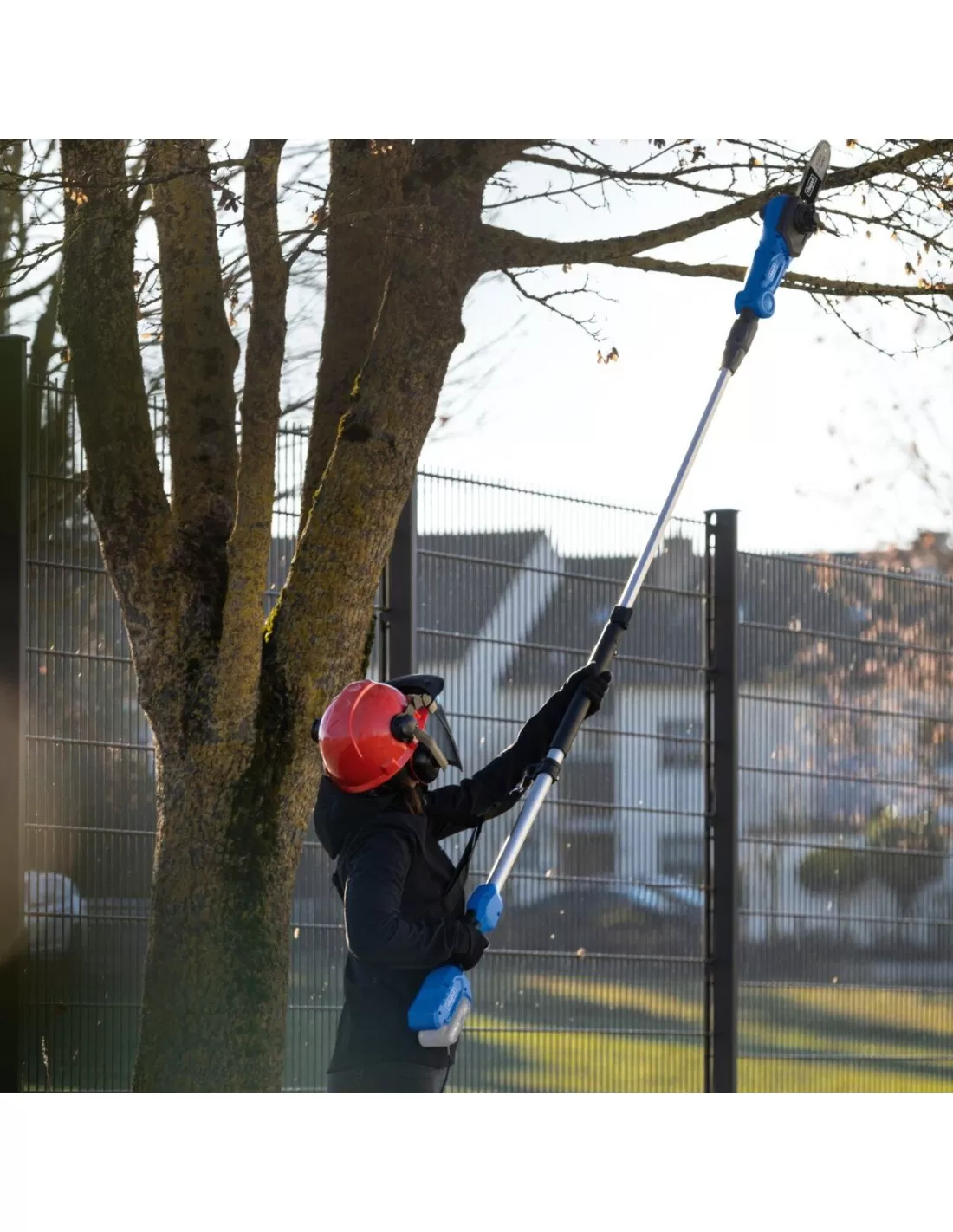 Con il dispositivo multifunzione a batteria Scheppach 2in1 C-PHTS410-X, i rami più alti o le siepi alte possono essere facilmente tagliati da terra. L'accessorio tagliasiepi può essere bloccato in 11 angolazioni diverse, mentre il potatore ha 4 posizioni diverse. Ciò consente un adattamento ottimale alla rispettiva applicazione. Una tracolla fornisce un ulteriore supporto e consente di lavorare per periodi di tempo più lunghi.
