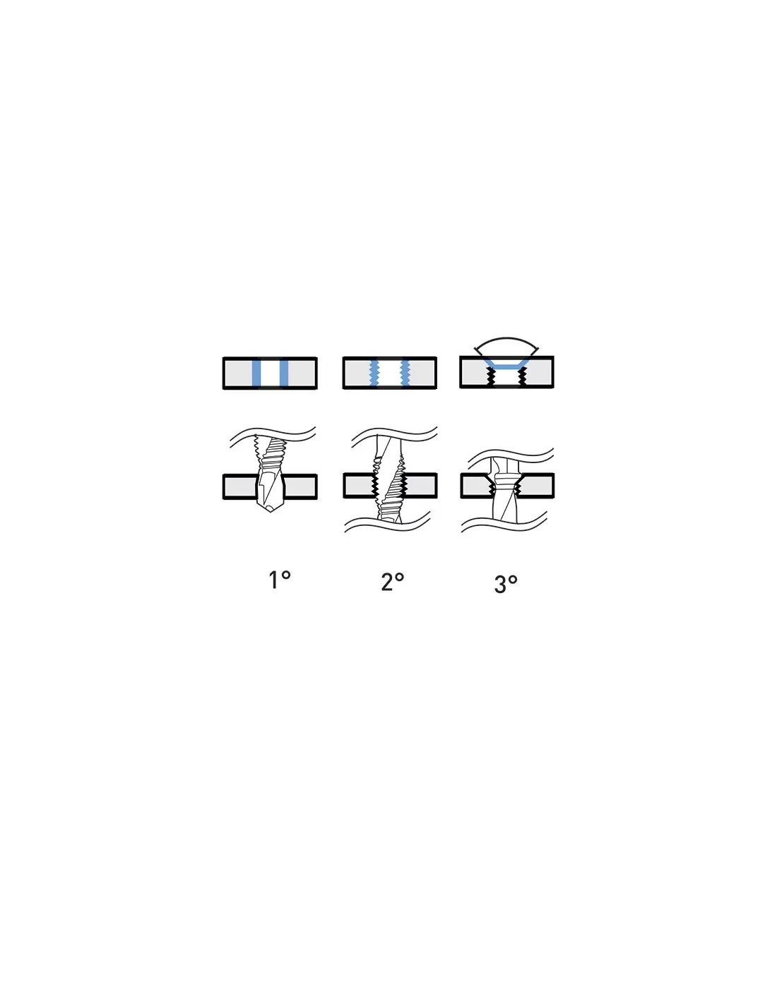 Grazie alla particolare geometria in un'unica operazione è in grado di forare, filettare e svasare.