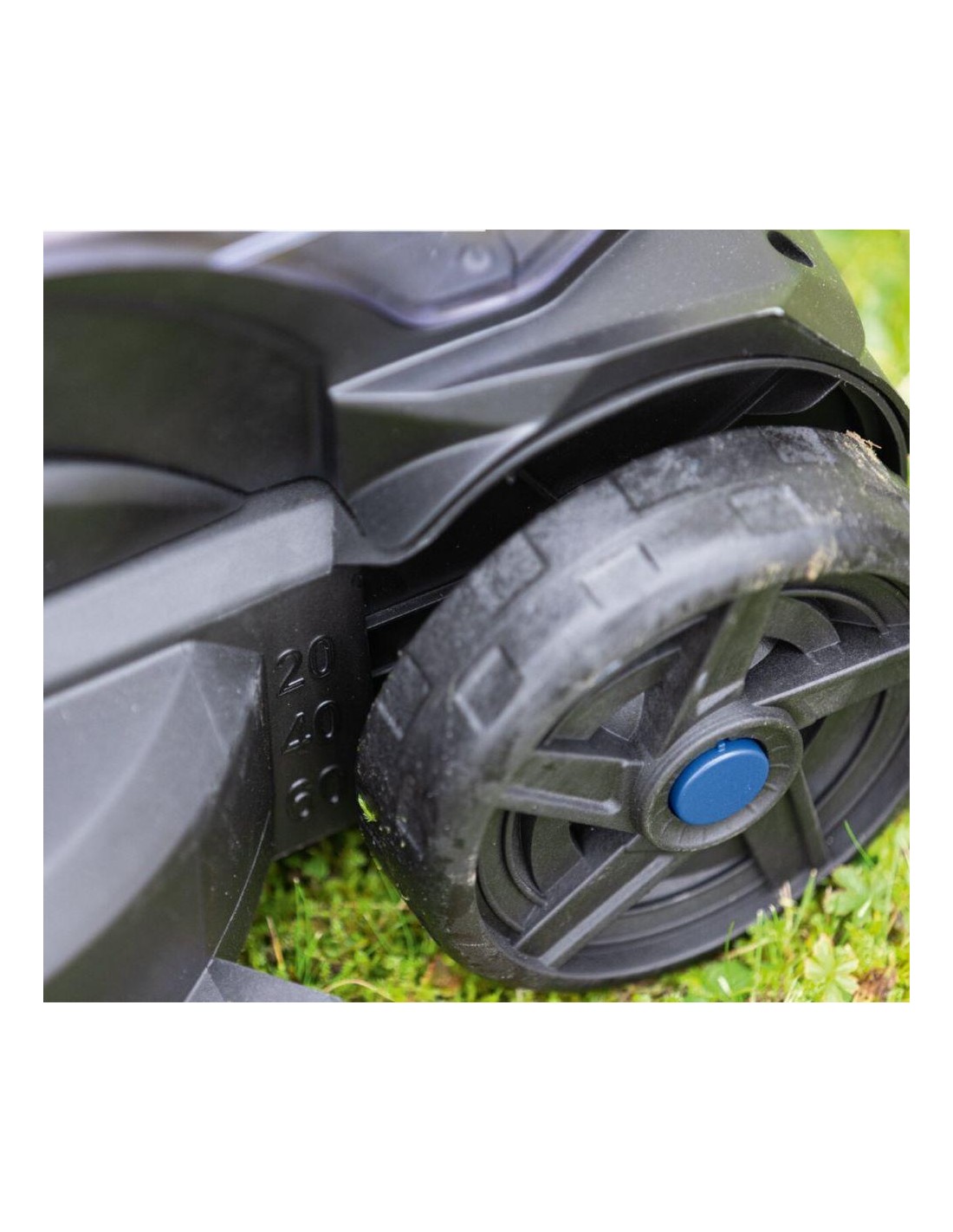 - Potente rasaerba a batteria con larghezza di taglio di 32 cm e funzione 3 in 1: falciatura, raccolta e bordatura del prato