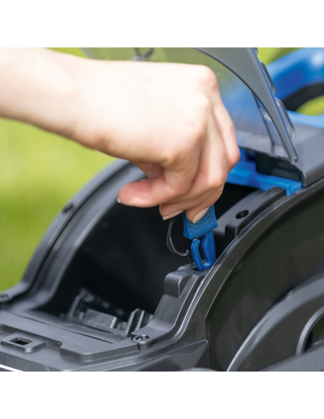 - Potente rasaerba a batteria con larghezza di taglio di 32 cm e funzione 3 in 1: falciatura, raccolta, bordatura del prato
