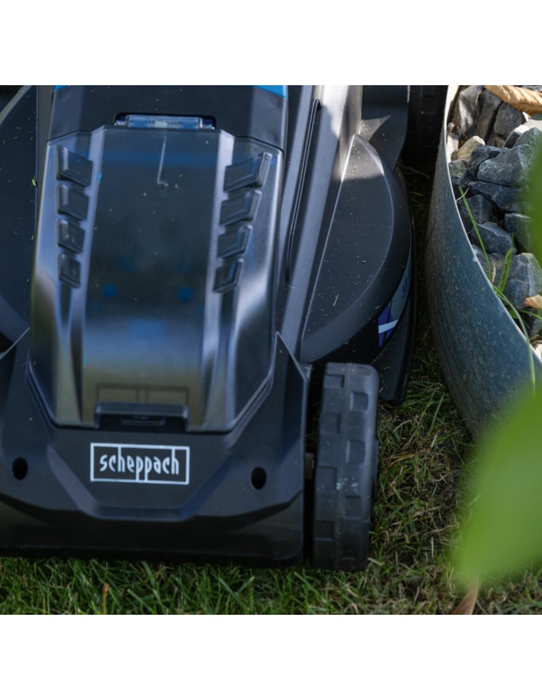 - Lavoro senza fili con la serie Scheppach IXES da 20 volt: tutte le batterie e i caricabatterie della serie di sistemi possono essere combinati con il rasaerba a batteria